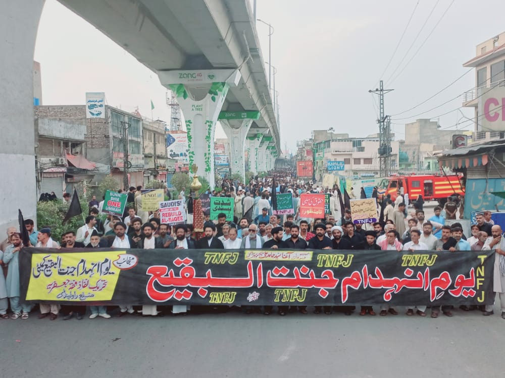 Mourning processions were also held in Lala Musa, Nowshera on the occasion of International Day of Demolition of Janat-ul-Baqi and mourning ceremonies were held. Processions were taken out from forty cities and towns of Sindh and mourning protests were held in all the small and big cities of Punjab.