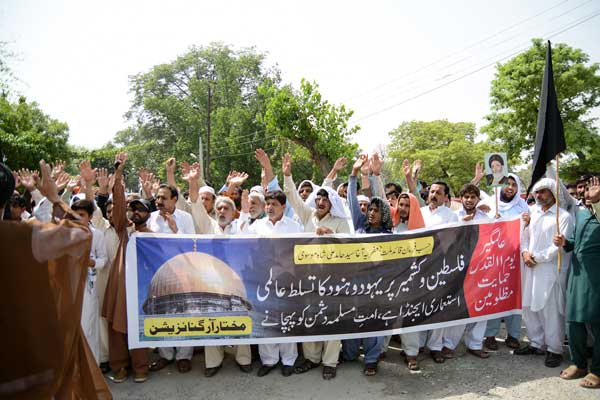 ISLAMABAD, June 8: In accordance with the announcement of the Chief Patron of Supreme Shia Ulama board and head of Tehreek e Nifaz e Fiqah Jafariya Agha Syed Hamid Ali Shah Moosavi, Alami Youm ul Quds Himayat-e-Mazloomeen was commemorated on the Jumma tul Wida (The last Friday of Ramadan) to express solidarity with the oppressed people Palestine and rest of the world. On this occasion, protest rallies were held across the country including the Federal as well as the provincial capitals of Pakistan to demand freedom for the Qibla e Awwal, support freedom movements of Palestine and Kashmir while condemn Israeli and Indian oppression against the innocent people of Palestine and Kashmir. A protest rally in the federal capital Islamabad was brought out from the shrine of Hazrat Sakhi Shah Mehmood Badshah to condemn Indian and Zionists states suppressing the legitimate freedom movements of Palestine and Kashmir through aggression. At Abpara Chowk, while addressing to the rally, Allama Basharat Hussain Imami read the special message of Quaid e Millat e Jafariya Agha Syed Hamid Ali Shah Moosavi in which Agha Moosavi said that the Qibla e Awwal of Muslims is calling the Muslims to demonstrate honor and dignity however, Muslim rulers are unmoved as their first and last preference is to protect their rule and kingships. He said that even the meager voice that used to be raised for the freedom of Al-Quds has died down. The situation appeared by the conspiracies of Zionists and colonial powers supported by the conservative and selfish Arab rulers has raised question marks on the freedom of Al-Quds and Palestine as most of the Arab countries have accepted Israel while some are having covert relationships. The continued destruction of sacred Islamic sites in Muslim countries has eliminated any moral pressure to stop Israel from disrespecting the holy sites. He expressed grave concern on the fact that only five percent of the historic sites have left on the land of Hijaz. Bomb attacks in the mosques around the world have become a routine matter. The so called Jihadi militant terrorist groups have been destroying holy shrines and graves of the Prophets, Ahl e Bait (A.S), and Sahaba e Karam right from Iraq, Syria, Bahrain, to Afghanistan and Pakistan which is also encouraging others to commit similar crimes against Islamic sites. The historic Babri Masjid was demolished but not even a single Arab state severed her diplomatic ties with India, one can realize that how could a demand of respecting Islamic signs made to Israel be effective in such a grave situation.