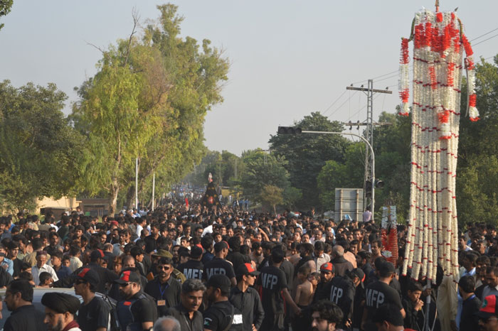 He said that more than ten million Azadars are offering condolences and paying tributes at the shrines of Hazrat Imam Hussain (A.S) and Hazrat Abbas e Alamdar at Ben ul Harmain in Karbala which proves that everyone is grieved on the tragic incident of Karbala without geographical or any other discrimination while the entire world of humanity is offering tributes to Maula Hussain (A.S) in several ways. Azadari processions of Zuljanah, Alam, and Taaziya were also brought out from Imambargah Col. Maqbool Hussain (A.S), and ImambargahHifazat Ali Shah. At Fawara Chowk, the Central procession of Ashura transformed into Majlis e Aza that was addressed by Allama Syed Qamar Haider Zaidi who highlighted the philosophy of martyrdom and mentioned about the tragic incidents of Karbala. On this occasion, the spokesman district Muharram Committee of TNFJ Syed Abul Hasan Bukhari presented resolution which appreciated the formation of Muharram Control Rooms in the federal interior ministry while demanded to connect Muharram rooms at provincial levels with TNFJs Azadari Cells as Ayyam e Aza will continue till 8th of Rabi ul Awal. The resolution expressed solidarity with the oppressed people of the occupied Kashmir and condemned blocking of Azadari processions by the Indian forces. The resolution also appreciated the achievements of operation Raddulfasaad while the resolution also demanded to restore the slogan of Nara e Haidery in the armed forces. Resolution strongly condemned the PCBs schedule of Cricket matches during Ayyam e Aza and on the day of Ashura and demanded the authorities to take action against those responsible. Thousands of participants of the Ashura procession expressed complete support and approval for the resolution and expressed unwavering confidence in the leadership of Quaid e Millat e Jafariya Agha Syed Hamid Ali Shah Moosavi while vowed to sacrifice anything for the sacred mission of Wila o Aza. On this occasion, Chaudhary Mushtaq Hussain and Wajih Kazmi also addressed the gathering. On route of the Ashura procession the volunteers of Mukhtar Students Organization ran an Azadari camp at Fawara Chowk while another Azadari camp was run by Mukhtar Organization outside ImambargahQadeemiHussainiMahaz. During the procession, Ibrahim Scouts provided free medical assistance to the Matamis and Azadars. Members of Tehreek e Nifaz e Fiqah Jafariyas regional and district Muharram committees, volunteers of Mukhtar Force were also present along with the contingents of police in the procession.
