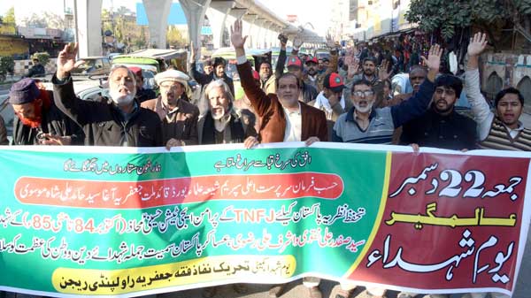 ISLAMABAD, December 18: Secretary General of Tehreek e Nifaz e Fiqah Jafariya Syed Shujaat Ali Bukhari has announced to observe Alamgeer Youm e Shuhada on Friday 22nd Dec to offer tributes and status elevation of the martyrs of HussainiMahaz 1984-85 including Syed Safdar Ali Naqvi and Ashraf Ali Rizwi as well as the martyrs of motherland including the courageous soldiers of Pakistans armed forces, students and teachers of APS Peshawar who laid foundation for the concrete efforts against terrorism, martyrs sacrificing lives for the protection of sacred sites, martyrs of Church in Quetta besides other victims of terrorism in the country along with those who died during Ayyam e Aza e Hussaini without any discrimination of country or sect. In his statement issued from the Head Quarter of Maktab e Tashayyo, he said that on the occasion of AlamgeerYoum e Shuhada, programs of Quran Khwani, FatehaKhwani, Majalis e Tarheem will be held in which special supplications will be offered for the elevation of Muslim world, protection of motherland Pakistan, elimination of terrorism, success of Operation RaddulFasaad, freedom of the oppressed world including the people of Kashmir, Palestine and Al-Quds while the voice of protest will be raised during Jummah prayers against American announcement of accepting Jeurasalem as the capital of Israel. Syed Shujaat Ali Bukhari mentioned that the purpose of commemorating AlamgeerYoum e Shuhada is to express solidarity with the bereaved families of the victims of terrorism and condemn all kinds of aggression and oppression. He said that those sacrificing lives for the protection of motherland are national heroes and their sacrifices will not go waste. The Secretary General of TNFJ stressed upon Muslim rulers to come out of their silos and thwart the conspiracies of evil forces and their leader America by demonstrating national courage and dignity. He demanded them to formulate a joint Muslim strategy based upon bold and concrete actions. Meanwhile, a central committee of TNFJ was formed to organize the programs of Youm e Shuhada, Syed Samar ul Hassan Naqvi was nominated as its convener and Dr. S. Zaman as the secretary of the committee.