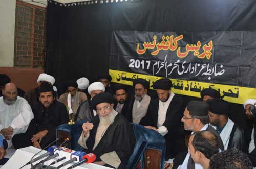 RAWALPINDI, September 20: The Patron-in-Chief of Supreme Shia Ulema Board and chief of Tehreek NafazFiqh-e-Jafariya, Agha Syed Hamid Ali Shah Moosavi hasannounced the 14-point Cod of Azadari, here Wednesday. Answering questions from newsmen at a Press conference he addressed, here at the headquarters of the Maktab-e-Tashih, he said Azadari Imam AaliMuqaam (A.S.) is the protector of religion and Shariat, monitors human dignity, is dearest to us from everything else in the universe, is our jugular vein and is the source of survival. All evil forces should know that no interference will be accepted in AzadariMazloom-e-Karbala. Answering another question, the TNFJ chief made it clear that Ashoor incident in Rawalpindi was a big conspiracy aimed at promoting anarchy in the country which has now been unearthed. He demanded that innocent persons involved in cases thereof should be set free and real culprits should be dealt an iron hand. He called upon the Federal and Balochistan governments to form an authoritative committee for solution of problems of Zaireen stuck up at Quetta-Taftan border which should lay down a schedule for Zaireens traffic on this route while train traffic on Zahidan route should also be restored. He demanded that security of all sensitive places including Rawalpindi may be handed over to the Army and Rangers while emergent OIC summit should be summoned to discuss the atrocities being committed against Rohingya Muslims in Burma. Agha Moosavi said that noose should be tightened around the banned organisations and calling any recognized Makatab as non-Muslim may be declared a cognizable offence, Muharram Control Rooms should be set up in the Interior Ministry and provinces and they should be linked with the TNFJ Muharram Committee Azadari Cell. He said government may create facilities for participants of Majalis and Azadari processions, patrolling by Elite Force and Rangers may be ensured for Muharram security, Ulema and Zakireen may give priority to national security, brotherhood and mutual understanding. The TNFJ chief said crushing the banned group is necessary for the ultimate success of Operation RaddulFasaad. He said Azadari is the most effective and peaceful protest of the oppressed. He said all Shia and Sunni brethren will observe the mourning of Nawasa-e-Rasool (A.S.) jointly. He reminded the government that she is bound to provide protection to EidMilad-un-Nabi and Azadari procession under the May 21, 1985 Junejo-Moosavi agreement. He said Azadari is the name of positivity and they would never encourage negative activities. Answering another question, he made it clear that there is no restriction of Tehreek NafazFiqh-e-Jafariya, therefore, names of our workers should be withdrawn from the Schedule 4. Replying another question, he said in 16 August meeting our representative delegation with Federal Interior Minister Ahsan Iqbal and Federal Religious Minister Sardar Muhammad Yousaf stressed was given on setting up Control Rooms for the oncoming Muharram and forming a Coordination Committee for solution of issues with mutual consultation. He said the TNFJ had sent the names of its representatives for this committee but we have not yet received any names of government representatives nor any notification has been issued for setting of Muharram Control Rooms. Moreover, he added, persons included in the Ulema Board formed in Punjab are not the representatives of Makatab and their decisions are being imposed on Azadaran and Zakireen which a source of unrest and should be settled. Meanwhile, the Quaid-i-MillatJafariya announced the following Code of Azadari at his Press conference: (1) Pakistans Armed Forces are confronting the internal and external enemies. Army Chief General Qamar JavedBajwa has announced that now it is worlds turn to do more therefore all national institutions should come on the same page by gathering behind the Pakistans Armed Forces; (2) Terrorist groups declared banned officially may be dealt with an iron hand and restriction may be imposed on them against openly working with new names and on their foreign funding; (3) Calling any recognized Makatab as non-Muslim may be declared a cognizable offence; (4) Government may create facilities for participants of Majalis and Azadari processions, Azadaran may not be harassed, special monitoring of buildings around and vacated places may be made. Video film of Azadariprogrammes be made, CCTV cameras and walk-through gates may be installed at the entry and exit points of Majalis and Matmi processions and patrolling by police mobile squads and Elite Forces may be ensures for safety of the same. Cooperation of Ibrahim Scouts and Volunteer Mukhtar Force may be sought along with police and Rangers in security matters. (5) The care-takers of Imambargahs, Aza Khanas, organisers of Majalis and Matmi processions may also make security arrangements themselves; (6) Ulema and Zakireen may give priority to national integrity and brotherhood, avoid provocation and preach the sacrifices of the Shuhada-e-Karbala in a positive manner; (7) The sacrifices of the Shuhada-e-Karbala may be highlighted in an effective manner and musical and comedy programmes and dramas may be suspended during the Ashra-e-Muharram. Newspapers may publish special editions on the seerat and invaluable performance of heroes of Karbala incident so that the spirit of sacrifice can be kept alive; (8) Political parties may keep the political activities suspended during the Ashra-e-Muharram; (9) Women may follow the seerat of Mukhaderat-e-Ismat and Taharat and men may follow the seerat of Shuhada-e-Karbala, Ahle Bait Athaar, and Sahaba Kubaar; (10) Timings and discipline may be may be ensured in holding all Majalis-e-Aza; (11) Honour and respect of all Maslak including minorities may be taken care of; (12) Provision of electricity and gas may be ensured during Majalis and Matmi processions and arrangements for cleanliness and lights may be made; (13) Ulema