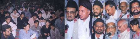 KARACHI: As per instructions of TNFJ Chief Agha Syed Hamid Ali Shsh Moosavi, Yaum-e-Dua Day of Prayers, was observed throughout Pakistan marking yaum e zahoor, Imam Zain-ul-Abideen (a.s). Programs were organized at Mehfil e Shah e Khurasan, Bargah e Shohada e Karbala Incholi, Markazi imambargah Jaffar e Tayyar (a.s), Rizvia Society, Azakhana e Zahra(s.a), Imambargah Hussaini Mission, Imambargah Kazmain and many other places. Markazi yaum e dua function in Karachi was held at Imambargah Abu Talib (a.s), Haidery Goth, Drig Road. A good number of religious scholars including Allama Mazhar Hussain abidi, Allama Syed Aun Muhammad Naqvi, Allama Wiqar Naqvi, Allama Sibt e Haider Moosvi, Allama Agha Nadir Shah, Allama Nazar Mehdi, Syed Sami Naqvi, Syed Ali Mehdi Zaidi, Syed Badar Ali Tirmizi & Syed Muhammad Ali Mehdi participated in the program. President, TNFJ Karachi, Allama Syed Mazhar Hussain Abidi said: Standing for the right against Cruel & Evil Rulers is the way of Hazrat Imam Zainul Abideen (a.s). He was the one who always stood firm against the cruel rulers & never led down the holy flag of Islam. Allama Aun Muhammad Naqvi said: Islam presently is on the hit list of terrorists. If OIC does not play its part to fight terrorism and remains silent, then its presence being useless. And then all the responsibilities of loss of Good-Will given to Islamic world be to OIC. He also included that we are celebrating day of prayers at the time while Muslim world is facing so many problems, and if the Islamic countries want solution to all their problems with peace, they all must have to follow the lifestyles & sayings of Masumeen (a.s). Allama Waqar Taqvi on the occasion said: to impose a permanent peace in our motherland Pakistan, our rulers must punish the arrested terrorists soon with the most unsympathetic hands. Allama Agha Nadir Shah said its necessary countries around the world call back their militaries from Iraq & arrange elections to form a public government in order to restore democracy in Iraq. Dua & fateha prayers were offered for all the sacrificers & martyrs of Millat e jafariya who became victims of terrorism.