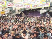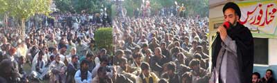 Zaidi expressing his concern over the meetings of the Prime Minister with the banned organizations said it is commensurate with sabotaging the steps of President Musharraf and strengthening terrorists. He also condemned a private TV channel for not stopping musical and entertainment programmes till the Day of Ashoora. He lauded the better arrangements made by the Islamabad and Rawalpindi Administration for Muharram. He said Azadari is not inheritance of any particular sect or group rather it is the joint inheritance of all schools of thought. That is why, he said, all Shia-Sunni brethren observe the remembrance of Shuhada-e-Karbala, organise Sabeels, and make arrangements for Nazar-o-Niaz. No hurdle in way of Azadari would be accepted. On this occasion, thousands of Matamdaran reiterated their resolve to offer all types of sacrifice on the call of Quaid-i-Millat-i-Jafariya Hamid Moosavi for promotion of Wilayat-e-Ali (A.S.) and protection of Azadari. Ch. Mushtaq also addressed the gathering on this occasion. Haider Abbas Bajwa, Central President of Mukhatar Students Organisation presented a resolution that was approved by the participants by raising vociferous slogans. The resolution made it clear that the exemplary martyrdom of Hazrat Imam Hussain (A.S.) and his near and dear ones was for the protection of religion and Shariat and for the respect of mankind. The participants of the rally while presenting condolences in Bargah-e-Khatmi Martabat (SAW) reiterated their resolve that they will neither bargain nor allow anyone to bargain on highest goals and principles for the supremacy of which these precious sacrifices were offered. The resolution said while mourning is at its peak throughout the world including Pakistan, meetings of the Prime Minister at this time with banned organisations and such organisations that have no standing is surprising and a matter of concern. The resolution called upon the President and the Prime Minister to take strict notice that why real powers are not given time for meeting by those who are in echelons of power. He said the real representatives of the nation should be found out and those elements should be identified who are creating differences between the government and the real representatives of the nation. The resolution said that the Punjab Government makes tall claims that they have done this and that for the welfare of the people but they should tell what they have done so far to facilitate the Azadaran-e-Mazloom-e-Karbala? The resolution thanked the Islamabad and Rawalpindi Administration for fully cooperating during the Majalis and Matmi processions of Ashra-e-Muharram. While lauding the setting up of Muharram Control Rooms by some provinces and by the Interior Ministry, the resolution expressed concern that neither the Punjab Government has formed these Cells nor they replied to any letters as they had been sent more than a hundred letters by the Central Muharram Committee Azadari Cell of Tehreek Nafaz-e-Fiqh-e-Jafariya. How could the peace be restored when real representatives are not contacted? The resolution expressed surprise that Chief Minister Ch. Pervez Illahi says that he was born and brought up in Punjab then why he visited the neighbouring country and contacted their representatives but why he was ignoring the real powers and real representative organisations of the nation?