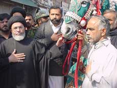 Quaid-i-Millat-i-Jafariya Hamid Moosavi made special participation, offered Ziarat of the taburrakaat and participated in Matamdari. A large number of mourners engaged themselves in heavy Zanjeer-Zani and Matam-e-Qama at Bohar Bazar Chowk, Trunk Bazar, and Habib Bank Chowk.