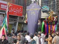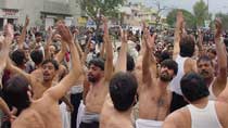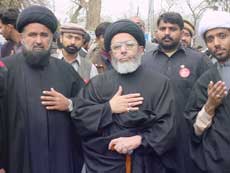 ISLAMABAD March 03: Programmes of Majalis-e-Aza and Matmi processions organised by religious and Matmi organisations in different Imambargahs and Aza Khanas in connection with the Ashra-e-Beemar-e-Karbala continued on Thursday in line with the announcement made by Quaid-i-Millat-i-Jafariya, Agha Syed Hamid Ali Shah Moosavi. Addressing Annual Majlis-e-Aza at the residence of Syed Asad Ali Rizvi at I-8/4 Islamabad, Khateeb Fateh Furat said, Beemar-e-Karbala Hazrat Imam Zainul Abideen (A.S.) was the symbol of courage, patience and firmness who shattered the courts of Yazid and Ibne Ziad through his heart-rending addresses after the martyrdom of Hussain (A.S.) despite being chained and preached the freedom fighters and conscientious people for ever how to get rid of oppression, brutality and slavery. He said the Yazidi agents were defaming Islam everywhere even today and uswah-e-Sajjad (A.S.) is the best example to root out their conspiracies. Imam Aali Muqaam Hazrat Imam Hussain ibne Ali (A.S.) sacrificed his whole family along with his near and dear ones to disseminate the universal message of Islam as a result of which flag of Islam is fluttering all around with full dignity. Syed Hassan Jafar Zaidi brothers performed Marsia Khwani while Syed Muzaffar Rizvi, Abu Turrab Askari and Wajihul-Hassn Kazmi presented Salam and Noha. Matmi Dasta Karwaan-e-Abbas (A.S.) performed Matamdari and Noha-Khwani. A Majlis-e-Aza for ladies was held at Jamia-tul-Murtaza G-9/4, Islamabad in connection with the Ashra-e-Beemar-e-Karbala. Zakira Qura-tul-Ain in her address said, Aseeran-e-Karbala preached the message of Hussainiyyat with courage and bravery in the streets of Kufa and Syria and in the courts of Yazid and Ibne Ziad despite being chained. She said the pious uswah of Mukhadderat-e-Ismat and Taharat is the best example for women the world over to follow. Dukhtaran-e-Hashmi performed Marsia Khwani followed by Matamdari. Mukhtar Force Pakistan Kahena Bajar Section organized a Majlis-e-Aza addressed by TNFJ Central Secretary Information Syed Qamar Zaidi, Allama Zawar HUssain Madni, Zakir Matlob Kazmi, Zakir Hasnain Naqvi, Zakir Ghulam Raza Chak Dinal, Zakir Riaz Hussain and others followed by matamdari. Dozens of banners inscribed with the sayings of Quaid-i-Milat-i-Jafariya Syed Hamid Moosavi regarding Wila-e-Ali (A.S.) and Aza-e-Hussain (A.S.) were hanged in the majlis hall. A resolution adopted by the gathering while praising President General Pervez Musharrafs steps to eradicate terrorism demanded him to ensure implementation of Anti-Terrorism Act besides tightening noose around banned groups working under new names. The participants reiterated their resolve to present every kind of sacrifice on the call of Quaid-i-Millat-i-Jafariya Hamid Moosavi for mission of Wila and Aza. Special arrangements were made for Langar-e-Hussaini on the occasion. Series of majalis marking the Ashra-e-Beemar-e-Karbala under Islamic Students Organizations is underway. Addressing the majlis on Thursday overseer of Jamiatul Momineen Allama Muhammad Ali Haleemi said Syed-us-Sajideen Hazrat Ali bin Al-Hussain (A.S.) fully followed Siyasat-e- (politics) Ilahiya, Nabawiya, Alwiya, Hsaasaniya and Hussainiya after the martyrdom of Imam Hussain (A.S.). Syed Imran Kazmi, Syed Manzar Abbas, Syed Mushahid and Tabassum Kazmi also addressed. Later, matamdari was performed. Meanwhile, majalis and processions were also held in Karachi, Larkana, Hayderabad, Lahore, Multan, Faisalabad, Sheikhupura, Quetta, Peshawar, Kohat, Muzaffarabad, Skardu and many other cities.