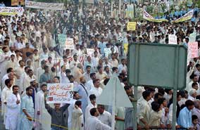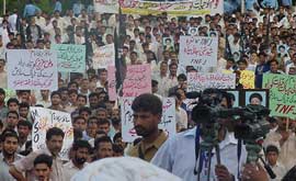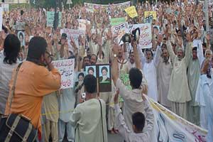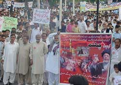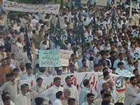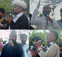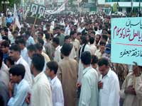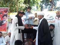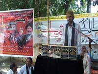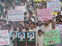 Provincial President TNFJ Sardar Hassan Ali Qazilbash, Sardar Mumtaz Ali Qazilbash and others addressed a Majlis-e-Chehlum at Imambargah Master Ghulam Haider Chah Shahbaz Peshawar organized by Provincial Council TNFJ Sarhad. In Faisalabad, Central Majlis-e-Chehlum was held at Dars-e-Aal-e-Muhammad (A.S.) under arrangements of TNFJ Chehlum Committee of Faisalabad Division. Allama Agha Abdul Hasan Sarhadi and many others addressed followed by a matmi protest rally that was led by office-bearers of TNFJ and leaders of other religious and matmi organizations. The protestors expressed their grave concern over delay in arrest of the assassins of TNFJ martyrs of Bari Imam and urged the government to immediately hold the culprits and punish them harshly. A majlis-e-aza was held at Peoples Colony Faisalabad addressed by Zakir Soheb Mehdi, Zakir Ali Imran, Allama Iltaf Hussain and Zakir Qalb-e-Abbas. Majalis-e-Aza and protest rallies were also organized in Larkana, Bhakkar, Dera Ghazi Khan, Multan, Muzaffar Garh, Gilgit, Mirpur Khas, Haiderabad, Kherpur Miras, Mianwali, Lahore, Sheikhupura, Hafizabad and other cities to mark the chehlum of TNFJ martyrs of Bari Imam Incident, martyrs of Madina-tul Ilm Mosque and Lal Shah Sorasi which demanded urgent arrest of the culprits while lodging strong protest against terrorism.