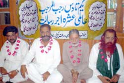Addressing these gatherings, renowned ulema-e-keram, waezeen and zakireen threw light on the seerat of Imam Ali Al-Hadi (AS) in detail saying that practically following his seerat is best source of success in this world and the hereafter. In Rawalpindi, the main function was held at Ali auditorium. Hayat Talba-e-Islamia Pakistan organized the gathering. Syed QAmar Haider Zaidi, Syed Basim Abbas Zahiri, Hasan Raza Kiani, Poet Naqqash Naqvi, Shehzad Butt, Ali Zeb Kazmi, Arif Hussain Al-Hussaini, Syed Qasid Hussain Shah, Suleman Butt and many others addressed. Jafar Khan recited Holy Quran while Syed Joan Ali Shah Mashhadi was stage-secretary.