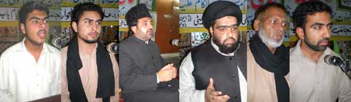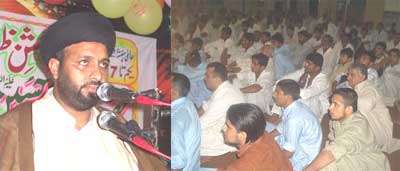 Allama Basim Abbas Zahiri in his address said, Hazrat Imam Hussains (A.S.) grandfather is Syed-ul-Anbia, Baba is Syed-ul-Aulia, and mother is Syeda-tun-Nisa Al-Alameen. He said the survival of the oppressed, have-nots and disturbed people only lay in Hussainiyyat. Zakir Syed Matloob Hussain Kazmi in his address resolve to follow the uswah-e-Hussaini and would never compromise on oppression and brutality and would support any call of the Quaid-i-Millat-i-Jafariya Agha Syed Hamid Moosavi for his mission of promotion and protection of Wilayat-e-Ali, Aza-e-Hussain. Poet of Ahle Bait Naqqash Naqvi, Mohsin Raza Bilali, Arif Hussain Shah, and Shahzad Hussain Sanadi paid poetic homage to Imam Hussain (A.S.). Syed Mushahid Hussain Kazmi recited from the Holy Quran while Syed Jone Ali Mashadi performed as Stage Secretary. A resolution adopted on the occasion announced complete support to the oppressed people of Kashmir, Palestine, Afghanistan and Iraq, strongly condemned the oppression and brutality and called upon the international organisations to take effective and practical steps to check the colonial tactics and aggression and get the long standing issues of Kashmir and Palestine resolved in the light of the desires of the respective people, get the United Nations Peace Keeping Force posted in Afghanistan and Iraq after pulling out the American and allied forces from there. Another resolution termed the utterances of American presidential candidate regarding attacks on Makkah, Madinah and Pakistan called it a condemnable and organised conspiracy but added that their remarks should not be ignored an unimportant as these remarks are actually reflect the colonial and Zionist designs being enforce for quiet long. The resolution said that after occupation of Afghanistan and Iraq, the colonial powers were trying to put their hand on Bait-Ullah (House of Allah), therefore, the Islamic World should adopt a consensus, strong and complete line of action and make it clear on the chief of the colonial powers and their agents that the followers of the Muslim Ummah are ready to die over the issue of respect and dignity of the holy places. Another resolution called upon the OIC to play its role for restoring the honour and dignity of the Jannatul Baqee and Jannatul Moalla and dilapidated condition of the destructed holy places in Samarra instead of playing the role of silent spectators. Yet another resolution expressed full faith in the dynamic leadership of Quaid-i-Millat-i-Jafariya Agha Moosavi and reiterated the resolve to support any line of action given by him. Khateeba-e-Aal-e-Nabi Syeda Binte Ali Moosavi addressing the Mehfil-e-Hussainiyyat held at Sheb-e-Abi Talib under the auspices of Anjuman Kaneezan-e-Imam-ul-Asr said that the Imam Aali Muqam is that great Leader of humanity that has no match in the whole universe because Hussain (A.S.) alone saved the hard work performed by 1.24 lakh Prophets. She said the one Sajdah of Hussain (A.S.) made Yazid of every era a bad name within no time. Allama Syed Mohsin Ali Hamdani addressing the Youm-e-Hussain Mehfil at Qasr-e-Abu Talib said that owing to unmatched sacrifice presented in Karbala, the names of Yazid and Pharaoh are wiped out but Hussain (A.S.) is still ruling the hearts of the people. Naseer Hussain Sabzwari also addressed the gathering. A Mehfil-e-Milad under the auspices of Anjuman Faiz-e-Punjtan (Women Wing) was held at Imambargah Zainul Abideen. Hojjatul Islam Syed Hussain Muqaddasi addressing the Mehfil-e-Hussaini held at Imambargah Ahle Bait Wah Cantt under the auspices of Anjuman Ghulam-e-Haider Karrar termed the Azm-e-Shabbiri as the best solution to the most difficult issues being faced today. He said Hussain (A.S.) is the only leader who declared that staying against oppression and brutality and restoration of justice and fair-play is Hussainiyyat and no dictator and oppressor could stop us doing so.