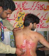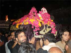 RAWALPINDI, October 4: The Youm-e-Shahadat of Amirul Momineen Hazrat Ali ibne Abi Talib (A.S.) was observed throughout the country with religious spirit, devotion and respect marking an end to International Ayyam-e-Aza. Taboot Shair-e-Khuda (A.S.) processions were taken out in all small and big cities, towns and villages and ulema, waizeen and zakireen addressed Majalis-e-Aza at mosques and Imambargahs highlighting the seerat of Amirul Momineen Hazrat Ali (A.S.) in detail. In Rawalpindi, main Taboot procession was taken out from the Aza Khana Mubarik Bano Mohanpura under the auspices of Nayyar Hussain Zaidi. The Quaid-i-Millat Jafariya, Agha Syed Hamid Ali Shah Moosavi participated in the procession and offered Ziarat of the Taburrakaat and participated in Matamdari. Various ulema and office-bearers of the Ayyam-e-Aza Committee of the TNFJ accompanied him. Dozens of Matmi Halqas and thousands of mourners from Rawalpindi Division participated in the Azadari procession. Zanjeer-Zani was performed when the Taboot reached Novelty Chowk. The main procession reached Imambargah Col. Maqbool Hussain around Sehr time after passing through Fawwara Chowk and Trunk Bazar. Mukhtar Students Organisation had set up Azadari Camp during the procession in Kashmiri Bazar where Sabeel-e-Tea was also arranged. Ibrahim Scouts provided medical aid to the mourners en route the procession.