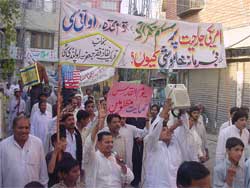 The participants of the procession were carrying banners and placards inscribed with different slogans in favour of Al-Quds Al-Sharif and against the American-Hindu colonial powers and Israel. The protest procession turned into a rally after reaching Committee Chowk. Convener of the International Youm Al-Quds Himayat-e-Mazloomin TNFJ paid rich tributes to all Muslims who displayed practical unity and brotherhood by participating in Youm Al-Quds Himayat-e-Mazloomin programmes on the call of Quaid-i-Millat Jafariya Agha Syed Hamid Ali Shah Moosavi. He said Muslims are Millat-e-Wahida and we would have to confront the atheists by becoming united. That way we would not only succeed in achieving Bait Al-Maqdas but it would also resolve all problems faced by them. TNFJ Provincial Council Punjab President Allama Abu Jafar Naqvi said that these days Muslims are only Muslims by name, had they been the men of deed then we would not have to face humiliation here and there today. He said forming a Muslim United Forum was need of the hour to root out atheism. Allama Mohsin Ali Hamdani said the real cause of problems faced by the Islamic World are Muslim rulers themselves who have become tools in the hands of colonial powers. He said that Muslims would have to come out of their shackle and carry out a joint practical struggle after forming United International Islamic Forum to achieve Al-Quds Al-Sharif and Kashmir. A resolution adopted on the occasion lamented that international colonial powers have made the life of Muslims difficult despite the fact that the latter are enriched with uncountable blessings. Kashmir and Palestine are occupied by Hindus and Zionists for the last six decades, Zionists have occupied a great sign of Allah i.e. Bait Al-Maqdas and they carry out its desecration also day in and day out, all types of oppression is being carried out in Kashmir and Palestine. But unfortunately, neither Al-Quds Al-Sharif could be achieved despite United Nations resolutions nor were the long-standing issues of Kashmir and Palestine resolved in the light of the United Nations Resolutions keeping to the desire of their respective people. On the other hand, the resolution said, first Afghanistan and then Iraq was destructed in the garb of New York incident, many localities were destroyed, human blood was shed profusely, and the honour and dignity of the holy places was trampled. The resolution said that the biggest reason behind non-resolution of Palestine and Kashmir issues was internal strife, anarchy, unity of international colonial powers and their joint aggression against the Muslim Ummah. The whole Islamic World is under the grip of fear, Muslim Ummah has lost its identity because most of the Muslim rulers are following the agenda of pleasing the colonial powers just to grab or prolong power as a result of which Muslims are being victimised all over the world. Unfortunately Muslim is bent upon crushing the Muslim. The resolution further said that the Muslim Ummah should accept Pakistan as its leadership for achieving all occupied Muslim areas and for solution of problems faced by the Islamic World because Pakistan came into being on the basis of Nazria-e-Asaasi and is atomic power today by the Grace of God. It said that the Muslim rulers would have to go round the Bait Allah instead of the international colonial powers and to divert towards Almighty Allah so as to restore the lost honour of the Muslim Ummah, to increase its dignity, strength and solidarity and consider attack on any country or a Maslak as an attack on the whole Muslim Ummah leaving the geographical boundaries apart. The resolution appealed the powers that be and the opposition to adopt the policy of mutual understanding, bury the hatchet, keep their desires and feelings in control and adopt oneness of thought and deed and morality. Strongly condemning all types of terrorism, the participants of the rally supported the principled point of view of Quaid-i-Millat Jafariya Agha Syed Hamid Ali Shah Moosavi that a terrorist keeps no religion, Maslak or a country, he is only a terrorist and one who attaches him with any religion or a Maslak, himself is the biggest terrorist. A resolution also condemned the blast at Dargah of Sufi saint Khwaja Moinuddin Chisti in Ajmer Sharif. The resolution made it clear that neither Russia nor America but Allah is the Super Power. The participants of the rally announced their commitment that Muslims would become a concrete wall against their combined enemy so as to prove that Islam is the religion of peace and tranquillity. The resolution was optimistic that future of Muslims and the whole humanity is bright. Special prays were offered for an end to problems faced by the Islamic World, integrity, solidarity and development of motherland Pakistan. Later the demonstrators dispersed peacefully. A heavy contingent of District administration and police accompanied the procession. ISLAMABAD: