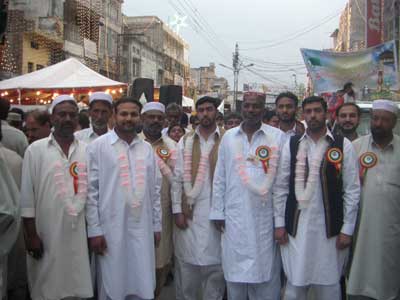 Addressing on the stage of Anjuman Ashiqan-e-Sardar-ul-Ambiya at Banni Chowk, TNFJ spokesman Syed Qamar Haider Zaidi urged the need of unity and brotherhood and reiterated his resolve that no power on earth could stop Milad-e-Mustafa and Yaad-e-Habib. He made it clear that Sunnis and Shias are brothers of each other who observe Milad-un-Nabi and Azadi jointly and consider the same as a blessing. We should utilize all our energies to disseminate the message of Wahdat (unity) and Akhuwwat (brotherhood) given by Quaid-i-Millat-i-Jafariya Agha Syed Hamid Ali Shah Moosavi. On this occasion, a resolution was unanimously adopted by the participants of the main Milad-un Nabi procession. Terming the continued publishing of blasphemous images in Danish papers a heinous conspiracy of colonial powers, it said that those who commit blasphemy of Prophet, whether they exist in any region they are enemies of Allah, therefore the United Nations is under obligation to take strict action against owners of the newspapers that disgrace the leader of whole humanity and the Best of All holy Prophet Hazrat Muhammad (SAWW) under its constitution; devise law on international level to get insult of Islam, Shaaer-e-Islam, holy sites and heavenly books stopped, and get blasphemous films banned. In this regard, OIC must fulfill her responsibilities. By another resolution, the participants urged the need of mutual understanding in stage of government-making in Pakistan and appreciated mutual understanding among all political stratums. Another resolution paid tributes to devotees of Mustafa (SAWW) for fully participating in the Milad-un Nabi processions despite dangers. Central convener Meesam Tammar, Syed Haider-e-Karrar Moosavi and Ala Haider addressed at different Milad Stalls. They while urging the need of Islamic world unity reiterated their resolve that no power on earth could stop Milad-e-Mustafa (SAWW) and Yaad-e-Habib-e-Khuda. They made clear that Shia, Sunni are brethren to each other; they unitedly observe Milad-un Nabi and azadari, and consider it worship rather the soul of all worships. They promised to utilize all their energy to promote and spread message of unity and fraternity of Quaid-i-Millat-i-Jafariya Agha Syed Hamid Ali Shah Moosavi.