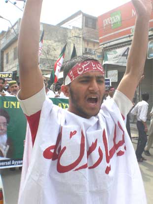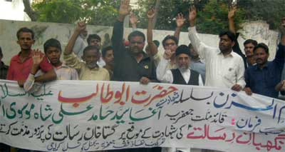 ISLAMABAD, April 4: Big demonstrations were held across the country to protest against blasphemous images, film and dramas on Friday on the conclusion of “Universal Ayyam-ul Huzn” (Universal Days of Grief) marking the death anniversary of Nighebaan-e-Risalat (Protector of Prophethood), Abu-l A’immah (father of imams), Amm-i-Naamdar Dana-e-Kul Khatmur Rusul Hazoor Akram (respected paternal uncle of the Seal of Messengers Prophet Hazrat Muhmmad (SAWW)) and respect worthy father of Ghalib ala Kulle Ghalib Hazrat Ali Al-Murtaza (AS), Hazrat Abu Talib (AS) in line with the announcement made by Quaid-i-Millat-i-Jfariya Agha Syed Hamid Ali Shah Moosavi.