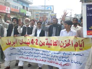 ISLAMABAD, March 27: A demonstration was staged by Tehreek Nafaz-e-Fiqh-e-Jafariya district council Islamabad to protest against attack of miscreants on Kachayi area of district Kohat and deteriorating situation in Hangu. Local office-bearers of Tehreek and Ulema-e-Karam led the demonstration.