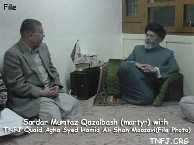 He said precarious situation of the Sarhad province is the result of wrong policies of the former provincial government while the present government did not take any practical step to correct the same despite inviting her attention to this issue many a time. He said a government that could not restore peace has no right to rule. The Quaid-i-Millat-i-Jafariya Agha Moosavi strongly demanded from the government to arrest the assassins of Sardar Mumtaz Ali Qazilbash forthwith and give them exemplary punishment. He made a fervent appeal to the patriotic forces to remain peaceful and thwart the conspiracies of enemies of Islam and Pakistan through mutual unity and brotherhood. He said we always preached brotherhood and mutual understanding and worked for the supremacy of the motherland and would continue our practical struggle in future also. Meanwhile, according to TNFJ Sarhads Provincial Spokesman Riaz Ali Kausari, some unknown terrorists shot dead Sardar Mumtaz Ali Qazilbash, Deputy Secretary General of Tehreek Nafaz-e-Fiqh-e-Jafariya. He set out from his residence in Hayatabad where some hiding terrorists sprayed bullets on him as a result of which he kissed Shahadat on the spot. He was immediately taken to Khyber Medial Hospital where a large number of provincial office-bearers and workers of Tehreek Nafaz-e-Fiqh-e-Jafariya had gathered. The provincial elite preached the workers to remain peaceful. The body of the Shaheed was sent to Imambargah Haider Shah in Peshawar City where his funeral prayers were to be offered after Isha prayers. It may be mentioned here that Sardar Mumtaz Qazilbash was also the caretaker (Mutawalli) of his Imambargah.