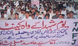 The meeting would review important national and international matters and important decisions would also be taken. Meanwhile, Youm-e-Tarheem was observed throughout the country on the call of Quaid-i-Millat-i-Jafariya Agha Moosavi to pay homage to all Shuhada including TNFJ Deputy Secretary General Sardar Mumtaz Ali Qazilbash without any discrimination for sacrificing their life for the religion and the motherland. Agha Moosavi addressing a gathering on the occasion said that international colonial powers and her agents were involved in the D.I. Khan incident. He said the international colonial powers by exerting pressure and testing the government desire to know who the main source of power in Pakistan is after the resignation of President. Therefore, he added, the rulers are under the obligation to ensure law and order and provide peace to people, first. He said rulers who cannot restore peace in the country have no justification to remain in power. The TNFJ chief demanded immediate arrest and exemplary punishment to the assassins of Shuhada of D.I. Khan and that of Sardar Mumtaz Ali Qazilbash while a high level Tribunal should be set up to compensate the losses and probe the incidents. He lamented that rulers condole and help those with whom they have links and relations while they do not bother to even sympathise other sections of society. He warned the government to consider Pakistan the most dearest and give priority to its survival, integrity and restoration of peace otherwise government will be responsible for what is going on or will be done. He made it clear that they have always preached peace and love, and given priority to peace and tranquillity but, perhaps, the rulers consider our gentlemanliness as our weakness. He made fervent appeal to the people to give priority to unity and brotherhood and thwart every conspiracy of the enemy against Pakistan by remaining alert and they will have to create the spirit of Tehreek-e-Pakistan for this purpose. He said we would thwart every conspiracy of the enemies of the religion and the motherland by becoming one and pious. Meanwhile, ulema and zakireen highlighted the philosophy of Shahadat in their address at Majalis organised by various religious organisations in all small and big cities and towns of the country including the twin cities of Rawalpindi and Islamabad. A peaceful demonstration was organised by the District Youm-e-Tarheem Committee of the TNFJ Rawalpindi against terrorism and blasphemy. TNFJ Rawalpindi President Alhaj Ghulam Murtaza Chauhan, local leaders of M.O., MFP, MSO and religious elite led the demonstration. Alhaj Ghulam Murtaza Chauhan addressed the gathering after which the demonstrators dispersed peacefully. Youm-e-Tarheem Majlis was organised at Ali Hall under the auspices of Hayyat Tulaba-e-Islam. Allama Shaikh Ijaz Hussain Modarris lauded the religious and national services of Sardar Mumtaz Qazilbash. Dua was offered for the Shuhada of all schools of thought including Shaheed Sardar Mumtaz Ali Qazilbash on this occasion.