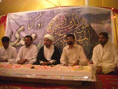 Allama Basharat Hussain Imami while addressing the gathering termed the following in the holy principles of Muhammad (SAW) and Aal-e-Muhammad (A.S.) only way to get rid of problems being faced by the Islamic world. He urged the need of sticking to Imam-e-Zamana (A.S.). He said at present whole world is waiting for a healer who will fill the oppression-filled earth with justice and equity. This would happen only when Mehdi Mooud by reappearing will flutter the flag of justice in the entire world. On this occasion, different Qasida Khwans paid rich poetic homage in the respected court of Imam-e-Zamana (A.S.). 92 pound cake, arranged by MSO G-9 Unit, was cut to celebrate the auspicious occasion.