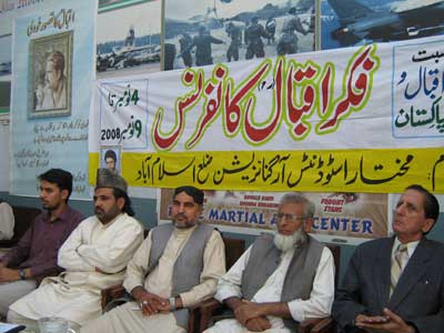 Syed Qamar Haider Zaidi Central Secretary Information Terhreek Nafaz Fiqh-e-Jafariya Pakistan, in his address on the occasion said that Fikar-e-Iqbal and his sayings were now followed despite passage of more than half a century to the creation of Pakistan as a result of which motherland Pakistan had to confront with one problem or the other, it fell victim to aggression losing half of the country in the process but even then we did not learnt any lesson. He said by the Grace of God, Pakistan is an atomic power and is a mole in the eyes of satanic powers. He said what is happening in the country today is courtesy international colonial powers and their agents and negation of the ideologies of Quaid-i-Azam and Allama Iqbal. He said Pakistan is the target of terrorism for quite long, is surrounded by terrorists from all around, there is anarchy and differences, and all energy is being wasted on accusing each other as a result of which the country is confronted with a very difficult situation. He said we would have to break the Kashkol-e-Gadai and should attach ourselves with Bait Allah and Maulood-e-Bait Allah (A.S.) instead of leaning towards Bait-e-Abyaz in the light of Fikar-e-Iqbal so as to make the motherland Pakistan welfare, Islamic and democratic State. Allama Basharat Hussain, Wing Commander (Retd) Sanaullah Khan Abbasi, a student from University of the Punjab Lahore Hassan Murtaza, Nazim Fikar-e-Iqbal Conference Syed Bu Ali Mehdi, Engr Ehad-e-Hadi, M.H. Jafri also addressed the gathering. The participants of the Conference through a resolution strongly condemned American bombing and missile attacks in Pakistans territory and declared the same as an attack on the honour and national autonomy. The resolution called upon peace-loving nations all over the world to condemn American attacks on Pakistans frontier areas. The resolution asked newly elected American President Barak Obama that had he keeps the situation of his nation before him, he would realise that what happended to Blacks in America and how much sacrifices they had to render. Therefore, as a first step, he should concentrate on restoration of peace in the world and achievement of rights for the oppressed as it is the only way to get America rid of crisis and to turn the world into a hub of peace. Tayyab Nazir, Malik Ali Furqan, Syed Qalab-e-Abbas and Haider Awan presented Kalam-e-Iqbal and Tarana while Arif Hassan Abidi presented Madah in honour of Iqbal. Haroon Ahmed and Waqas Meharban recited from the Holy Quran followed by its translation.