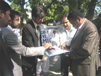 ISLAMABAD, October 24: Mukhtar Organisation (MO) organised demonstrations throughout the country after Friday prayers for the reconstruction of shrines of Hazrat Imam Jafar-e-Sadiq (A.S.) and other Mashaheer in connection with the Ashra-e-Sadiq-e-Aal-e-Muhammad being observed on the call of Quaid-i-Millat-i-Jafariya Agha Syed Hamid Ali Shah Moosavi.