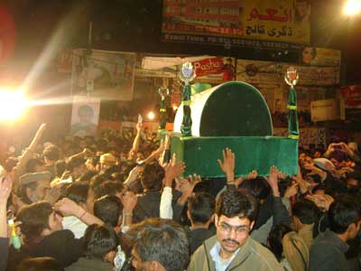 Majalis-e-Aza and Matmi processions were taken out on this occasion. The Quaid-i-Millat Jafariya Agha Moosavi took part in the main Matmi procession taken out from Peoples Colony Rawalpindi under the auspices of Syed Nawab Shah and participated in Matamdari and offered ziarat of Taburrakat. Talking to the Azadaraan on this occasion, Agha Moosavi said the practical following of Seerat-e-Nabavi and oswah of Hazrat Imam Hassan Mujtaba (A.S.) were need of the hour to get the world rid of terrorism and threat to peace. He said policy of mutual understanding would have to be adopted to root out problems and difficulties by following in the footsteps of the pious religious leaders (Hadis).