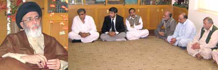 This was stated by him while talking to a representative delegation comprising TNFJ Sarhad leaders Maj. (Retd) Hasnain Haider Kazmi, Sardar Ali Asghar Qazilbash, Mir Abu Ghazanfar, S.A. Kazmi, and Sardar Ali Afzaal. He expressed his grave concern that the whole country in general, and Sarhad Province in particular, are in the grip of terrorism. He said no progress has been reported in the case of gory murder of Dr. Saqlain Haider Kazmi and Muhammad Abbas Advocate in Peshawar despite the arrest of culprits. He reminded that the TNFJ, on the occasion of funeral of these Shuhada had appealed the Peshawar High Court Chief Justice to take suo moto notice of all such incidents but no development has been seen yet in this case. Agha Moosavi said that there is an open conflict in the words and deeds of the government and rulers and politicians were busy to save themselves and score points against their opponents. He said international agenda is being progressed by promoting terrorism in Pakistan under the heinous international conspiracy and all schools of thought would have to thwart this conspiracy through practical display of unity and brotherhood without any discrimination. He said everyone should keep in mind that death could not be avoided by leaving the pious mission rather life is extended by disseminating good. He said there is a saying of the Amirul Momineen Hazrat Ali Ibne Abi Talib (A.S.) that death itself protects life, therefore, it could not come before the set-out time. No one is aware what would happen tomorrow, therefore, no one should shirk his responsibilities, he added. The TNFJ chief said that we have to do everything for the pleasure of Muhammad (SAAW) and Aal-e-Muhammad (A.S.). He said the followers of Nabi (SAAW) and Ali (A.S.) are not afraid of death and they continue their mission come what may. Terrorism, suicide attacks and blasts could not divert us from the path of Hussainiyyat, he said and added that we have filed the Bari Imam Incident case in the court of Hazrat Zehra (S.A.). He said we are continuing our mission despite threats because if the oppressors could continue their work then the oppressed will have to continue their mission come what may because the powers of good and evil remained side by side in every era; we would continue raising our voice for the oppressed and no power on earth could stop us from doing so. The Quaid-i-Millat Jafariya Agha Syed Hamid Ali Shah Moosavi said that Tehreek Nafaz Fiqh-e-Jafariya had presented Moosavi Peace Formula in Supreme Court when former Chief Justice Sajjad Ali Shah had taken suo moto notice of terrorism. He said Anti-Terrorism Act was enforced keeping in mind that formula, and the government had banned 26 extremist organizations twice but now the same banned groups were active with new names and they are being supported both by the government and the opposition. He said dream to restore durable peace in the country could not come true without taking lawful action against the banned groups with sincerity of purpose. He said Hussainiyyat could not be rooted out even we all are murdered and this mission would continue unabated. He said we give priority to the nation, country, unity and brotherhood over all other matters; that is why we have announced to observe Country-Wide Chehlum of Shuhada on March 19 who have lost their life in incidents of terrorism without any discrimination. We share the grief of the bereaved families of Shuhada. Strongly condemning the target killing of four MQM workers in Karachi on Wednesday he said we would have to work for the collective interest of the nation and the country by giving up all types of differences. We have to promote love and peace and to thwart the conspiracies of our combined enemy through unity and brotherhood, he added.