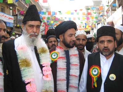 District Khateeb Maulana Ghulam Ali Qamber also addressed the participants at the stall of Markazi Milad Committee while Pir Naqeeb-ur-Rehman of Eidgah Sharif led the Dua. Pir Sarkarjee was also present on this occasion. Meesam Tammar, Abu Nasr Kazmi, and Syed Sajjad Haider Kazmi addressed from different Milad Stalls and in their address stressed the need of unity and brotherhood of the Islamic World. They announced their commitment that no power on earth could stop the Milad-e-Mustafa and Yaad-e-Habib. They made it clear that Sunni-Shia are brethren with each other and observe Milad-un-Nabi and Azadari jointly considering the same a blessing and worship. They said they would utilize all their energy in disseminating the Quaid-i-Millat Jafariya Agha Syed Hamid Ali Shah Moosavis message of Wahdat-o-Akhuwwat. They said observing Milad-e-Mustafa is worship and practical display of Islams fanfare. Various resolutions adopted during the processions, strongly condemned the ongoing incidents of terrorism and target killing and called upon the government and the opposition to take strict notice of such incidents. The resolution said that the government should take notice of some ministers and their parties who were supporting the terrorists because by doing so they are also putting the credibility of the government on stake. The resolution demanded from the government, the opposition, politicians, and rulers to give priority to the nation and the country so as to protect its Nazria-e-Asaasi. The resolution also strongly condemned target killing in Peshawar that claimed the life of TNFJ Sarhads leader Maj. (Retd) Hasnain Haider Kazmis brother Dr. Saqlain Kazmi and Muhammad Abbas and demanded from the Chief Justice of the Peshawar High Court to take suo moto notice of this incident. Another resolution strongly condemned incidents taken place during Eid Milad-un-Nabi processions in Dera Ismail Khan and Faisalabad and appealed the Islamian-e-Pakistan to exercise seriousness to thwart the nefarious designs of western lobbies busy in creating rifts amongst difference schools of thought. Milad parties led by Zakir Ghulam Farid Jafar, Zakir Abdul Ghaffar Kausar achieved special prizes by performing best Naat Khwani at different stalls during the procession. Anjuman Ghulaman-e-Abu Talib had set up a Reception Camp in the Markazi procession of Milad-un-Nabi in Rawalpindi Cantt. where special arrangement for Sabeel was made.