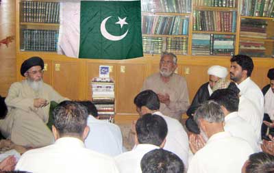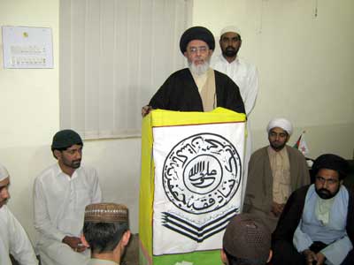 RAWALPINDI, April 26: The Quaid-i-Millat Jafariya Agha Syed Hamid Ali Shah Moosavi has said that Muslim ummah would have to seek forgiveness for its misdeeds and hold the Daman of Holy Quran and Ahle Bait (A.S.) for the supremacy of Islam, restoration of its dignity, survival, solidarity and integrity of the motherland Pakistan, and restoration of durable peace. This was stated by him while delivering a special address at the headquarters of the Maktab-e-Tashayyo here on Monday on the beginning of Hafta-e-Azmat-e-Muhammad-o-Aal-e-Muhammad. Agha Moosavi said at present the whole humanity, particularly the Islamic World, was confronted with one problem or the other; oppression and brutality is all around; international Taghoot is carrying out aggression against the Islamic World; life of Muslims in Iraq, Afghanistan, Kashmir and Palestine is being made difficult; and terrorism is the order of the day in Pakistan. This is so because Muslims have forgotten the commandments of Allah and the teachings of Holy Quran and are holding the feet of international colonial powers instead of attaching ourselves with Daman of Ahle Bait (A.S.), he added. The TNFJ chief said Anbia have been sent to us and were given holy books and Rasool-e-Akram (SAAW) from amongst them is the most superior. He said there is a saying of the Holy Prophet (SAAW) that goes: Allah selected Ismail from Aulad-e-Ibrahim, Bani Kananah from Aulad-e-Ismail, Quresh from them, Hashmi from them and I was selected from Bani Hashim. This saying of the Holy Prophet (SAAW) proves that he is the most superior Nabi from all others, he added. He said Allah Says: Oh, Rasool! Tell them if you are claimant of loving Allah then follow me (Muhammad SAAW). In other words following Rasool (SAAW) is a proof of love with Allah, he added. He said if Momineen have to choose from amongst life and love and following of Rasool-e-Khuda (SAAW) then the Momineen should sacrifice their life and go for love of the Rasool (SAAW). That is why it has been stated in Surah Ahzaab that do not go forward before the Rasool-e-Khuda (SAAW) and be afraid of him. The Quaid-i-Millat Jafariya Agha Syed Hamid Ali Shah Moosavi said Rasool-e-Akram (SAAW) faced many problems and difficulties in preaching religion and Shariat. He said Islam is complete system of life that brings out human beings from the darkness and guides them towards worshipping oneness and puts them on the path of human building. He said the Asaas of Islam is Quran that claims لا ریب فیہ which rests on Illahi Principles. He said commandment has been given to remain attached with the pious inheritors Ahle Bait (A.S.) to understand it, and the Rasool-e-Akram (SAAW) has guaranteed in Hadees-e-Saqlain that you would never be misled if remained attached with Quran and Ahle Bait (A.S.).