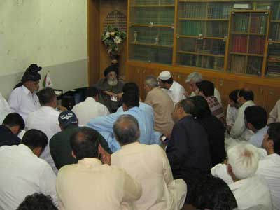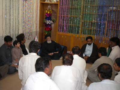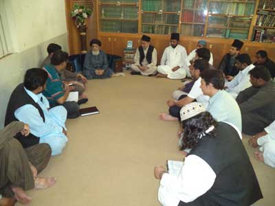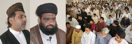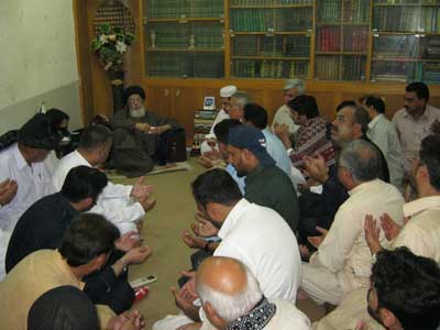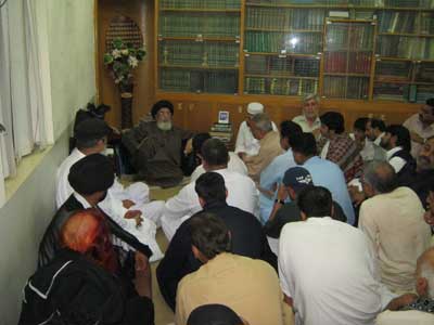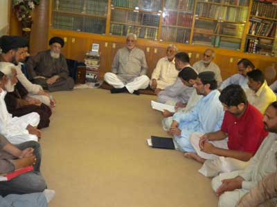 RAWALPINDI, August 09: The Patron-in-Chief of Supreme Shia Ulema Board and chief of Tehreek Nafaz Fiqh-e-Jafariy Agha Syed Hamid Ali Shah Moosavi has said that the agenda of leaving Muslims alone by killing them one by one under the heinous international conspiracy is being implemented for a long time. The international chief of terrorists thinks that she can reap her benefits by maintaining their control over the Middle East and the South Asia though Zionists and Hindus. This was stated by him while addressing the office-bearers of TNFJ Ashra Sadiq Aal-e-Muhammad here at Al-Murtaza Saturday. Agha Moosavi said the Zionist lobby when confronted humiliation and defame migrated to America where a master-mind founded American Zionist Emergency Council to trap America in Zionist shackle and after huge lobby of 9 years the Zionist took over the important sectors of American economy including banking system, press, gold, silver and now they can do whatever they so like so much so that the American elections can also be won only by that party that is supported by Israel. That is why America vetoes every resolution against Israel. He said the OIC and Arab League were also formed to protect the Zionist interests the fresh example of which is the recent statement of OIC Secretary Ayaz Amin Madani in which replying a question during his Pakistan visit about summoning OIC on Gaza issue, he said that if we summon the meeting then America will veto the resolution against Israel in the United Nations and if we take the issue to the International Court of Justice then Palestine and Israel are not its members while the OIC should have summoned its meeting at all cost and if the United Nations not listens then there is no justification of existence of this Muslim organisation. The TNFJ chief said that the international Islamic Organisations and most of the Muslim rulers are working for international powers. He said in 1967 when Israel attacked Egypt, Syria and Jordon and occupied many important areas then a resolution No. 242 was adopted against it in the United Nations. Sinai desert was vacated and Jordon had withdrew from Jerusalem and Camp David agreement came into being, in 1978 deserts were vacated and Gaza Strip was left, in 1987 Hamas came into being, in 2006 elections Al-Fatah was left and restrictions were increased. He said Egypt never considered Palestine even a human issue what to talk about Islamic problem. Gaza population of 18 lakh comprises Muslims and Christians, In Gaza Hashim in addition to massacre of innocent citizens, mosques, and the shrine of Hazoor-e-Akrams (SAAW) forefather Hazrat Hashim was also razed to ground. Agha Moosavi lamented that the United Nations Secretary General Ban Ki Moon has said that Gazas help will be made for the last time while America was warning Palestinians. He said the weak policy of the Muslim rulers is to save their rule and get their people killed. They are following the political agenda of Bani Ummayad and Banu Abbas because the Bani Ummayad used the name of Islam for their rule while Banu Abbas used the name of Ahle Bait (A.S.) for the same purpose. He said the rulers and politicians of Pakistan were using the name of people for saving or grabbing their chair. They consider the people as cattle-heads. He said Pakistan is the biggest target of international satan because the whole world is afraid of Pakistan being the atomic power and for its attachment to Nazria-e-Asaai Islam. The Quaid-i-Millat Jafariya Agha Syed Hamid Ali Shah Moosavi said that Pakistans Independent Day on August 14 and Ashra-e-Sadiq from 15 to 25 Shawwal will be observed with the commitment that we will die and live for Pakistan and its people. During these programmes, prays for the protection of holy places, success of the Pakistans Armed Forces and victory of the oppressed will be offered.