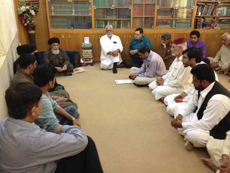 ISLAMABAD, September 23: The Quaid-i-Millat Jafariya Agha Syed Hamid Ali Shah Moosavi has said that terrorism and the target killing was going on in the motherland and the world over is not sectarianism but the satanic agenda the purpose of which is to confront Muslim States and the citadel of Islam Pakistan with anarchy and instability. He said the gory murder of the renowned personality in Karachi, target killing of Naib Mohtim of a religious institution in Rawalpindi and Maulana Sher Alam in Hangu, and blast near the FC vehicle in Peshawar Tuesday are the job of those powers that are averse to Zarb-e-Azb Operation. He said total silence of the government, politicians and media on setting the copies of Quran, holy books and Taburrakaat on fire in the Masjid and Imambargah in Tyre Bazar and Shahadat of the Masjids Khadim is condemnable, tragic and contrary to the norms of justice and fair-play. He said blaming the whole Maktab for job of any single person and crying hoarse of sectarianism itself is an act of terrorism. He said by observing the International Ayyam-e-Taqwa on 28-29 Zeeqaad on the occasion of Shahadat of Hazrat Imam Muhammad Taqi (A.S.), complete solidarity will be expressed with the Pakistans Armed Forces busy in Operation Zarb-e-Azb while hatred will be shown to terrorism so as to give a message to the satanic forces that like atheists are one Millat, all Muslims are also one Millat and they will thwart every conspiracy of the enemy through exemplary Sunni-Shia unity and brotherhood. This was stated by him while talking to a delegation that called on him here at the headquarters of the Maktab-e-Tashih Tuesday at the head of TNFJ provincial council president Allama Waqar Hassain Taqvi, general secretary Altaf Hussain Madhosh Bhutto, and Allama Muhammad Aal-e-Qasim Zaidi. The delegation also presented an organizational report on the occasion.