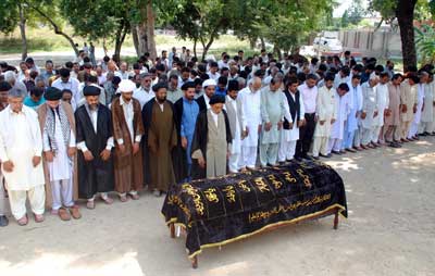 RAWALPINDI, October 11: The Quaid-i-Millat Jafariya Agha Syed Hamid Ali Shah Moosavis younger brother Agha Syed Maqbool Ali Shah Moosavi was laid to rest in his ancestral village Varyamal Saturday. He died at CMH Rawalpindi after a brief illness. The funeral prayers for the departed soul were offered at Ali Masjid, headquarters of the Maktab-e-Tashih in Rawalpindi late Friday in which central office-bearers of the TNFJ, Zakireen, Khutaba, renowned personalities belonging to different schools of thought, religious, political, social leaders participated in a large number. Before his burial, his funeral prayers were again offered at Varyamal led by Allama Syed Mohsin Ali Hamdani in which elite of the area, founders of Majalis, Azadaran, Matmi Salars and Sunni-Shia elite participated. Later he was buried beside his later mother. Syed Maqbool Ali Moosavi was the founder of Majalis and caretaker of Masjid and Imambargah. He was a very nice gentleman and was equally respected by all schools of thought. Besides his widow, he has left behind six sons Syed Sagheer Hussain Kamil, Syed Khabeer Adil Moosavi, Syed Khadeem Al-Hassan Moosavi, Syed Zain Al-Hassan Moosavi, Syed Samar Al-Hassan Moosavi, Syed Hassan Moosavi and two daughters to mourn. The Soyem for the departed soul will be held on Monday October 13 at Varyamal, Chakwal. Different religious, political, and social leaders have expressed condolences with the Quaid-i-Millat Jafariya Agha Syed Hamid Ali Shah Moosavi on the death of his brother.
