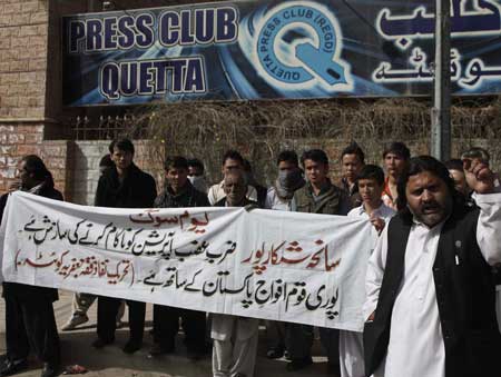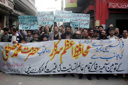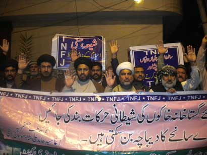 ISLAMABAD, January 25: Majalis-e-Aza were organised and protest demonstrations against blasphemy and terrorism were held throughout the country Sunday on the concluding day of Universal Ayyam-e-Chehlum Shuhada-e-religion and motherland announced by the Patron-in-Chief of the Supreme Shia Ulema Board and chief of the Tehreek Nafaz Fiqh-e-Jafariya. In these gatherings, homage was paid to all Shuhada who fell victim to terrorism and target killing including that of APS Peshawar, Chittian Hattian, and Sadiqabad and expressed complete solidarity with the Pakistans Armed Forced at present busy in carrying out Operation Zarb-e-Azb. Strongly condemning act of blasphemy by publishing blasphemous caricatures in the garb of attack on Chalie Hebdo they declared it a planned conspiracy of putting humanity to riot. The Tehreek Nafaz Fiqh-e-Jafariya Islamabad staged a protest demonstration in front of National Press Islamabad which was led by Ulema and elite of the party. TNFJ Secretary General Zulfiqar Ali Raja read out the message of Quaid-i-Millat Jafariya Agha Syed Hamid Ali Shah Moosavi on the occasion in which he termed terrorism a conspiracy against Islam and called upon the Islamic World to unite against it. He said the pedigree of all terrorist organisations is linked with the colonial powers who desire to stop spread of Islam by attaching terrorism with Islam and attack on the French journal is also a part of that conspiracy. The TNFJ chief lamented that Arab League and OIC have lost their honour. If the honour and dignity of Muslims is to be protected then heads of 60 Islamic States would have to carry out the Shaan-e-Risalat March and will get the Kashmir, Palestine, Burma and Bahrain issues resolved expressing unity and brotherhood and will have to get rid of begging attitude against the colonial powers while will have to take joint steps to root out terrorism otherwise, he added, the Muslims will continue to be crushed in the same manner. He said the million march staged in favour of the blasphemous journal encouraged them and published millions of more copies of the same sending a wave of resentment throughout the world but, he lamented, the champions of international peace did not take any notice of this situation. He said the statement of the chief of Israeli Labour Party is right that terrorism is only terrorism and those who love freedom should be ready to confront these powers but at the same he said that the terrorism being promoted by Israel should also be taken notice of in front of which there is no importance of any international human moral laws.