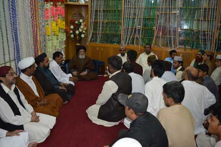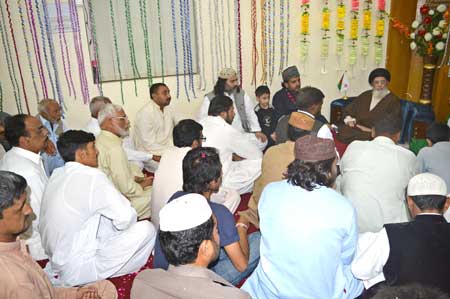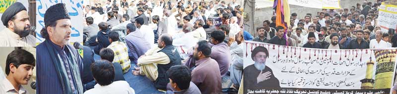 The TNFJ chief said that the war of a few groups cannot be termed sectarianism because all schools of thought are united from the defence of the frontiers to the development of the country like they were united at the time of creation of Pakistan. He advised the rulers to form a united alliance with Iran and Russia to keep Pakistan safe. Answering a question about the security arrangements, Agha Moosavi said that banning mobile service and such other steps are no permanent solution but are temporary in nature. Answering another question he said the government and opposition should not allow the banned groups to sit along with them nor they should be given media coverage. He said the condolence meetings and other religious rites for the Shuhada who lost their lives in incidents of terrorism in Bolan, Naseerabad and Jacobabad will be performed after the conclusion of Ayyam-e-Aza i.e. after 8th of Rabiul Awwal. A large number of mourners engaged themselves in heavy Zanjeer-Zani and Matam-e-Qamah at Bohar Bazar Chowk, Trunk Bazar, and Habib Bank Chowk. The procession turned into a big rally after reaching Fawwara Chowk where addressing the participants, Central Secretary Information of Tehreek Nafaz Fiqh-e-Jafariya, Pakistan, Syed Qamar Haider Zaidi said the invaluable sacrifice of Imam Aali Muqaam (A.S.) was for survival of religion of Islam and humanity. Ch. Mushtaq Husssain also addressed the gathering while Wajih Kazmi recited Noha-Khwani.