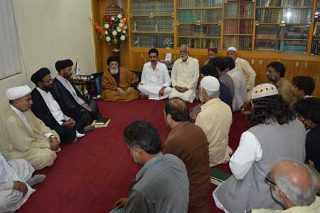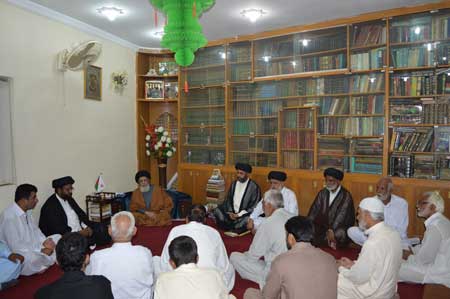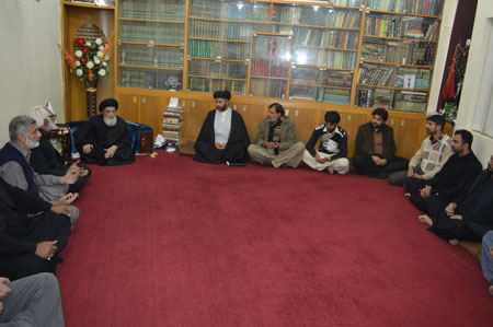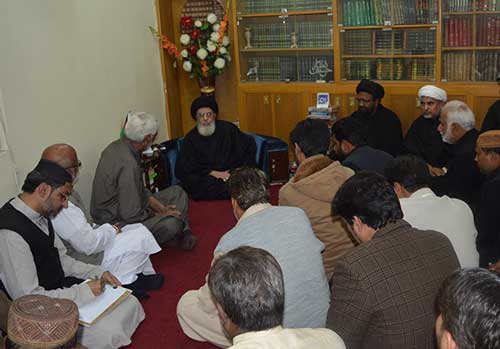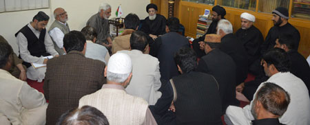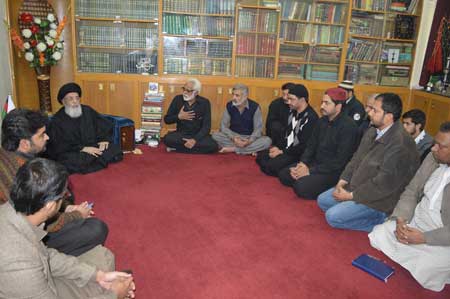 ISLAMABAD, November 27: The Patron-in-Chief of the Supreme Shia Ulema Board and Chief of the Tehreek Nafaz Fiqh-e-Jafariya Agha Syed Hamid Ali Shah Moosavisaid that India is a wicked enemy that is achieving her nefarious designs through wickedness and her expansionist designs are no more a secret. The chief of the colonial powers is using some Muslim States to keep Russia away from its agenda so as to save Daesh and her interests remain protected. The main objective of our perpetual enemy is to sabotage the China-Pakistan Economic Corridor and thwart the Operation Zarb-e-Azb and for that purpose is polluting the peace in Karachi and Balochistan. Ziarat of shrines of holy personalities is the earning for the Hereafter and source to please hearts and souls and providing facilities to the Zaireen is the duty of the government. The departure of the Zaireen from Quetta for the Chehlum of Shuhada-e-Karbala is a good step of the government. Punishment of hanging to dozens of persons in Saudi Arabia is tragic and a condemnable act. These views were expressed by him while talking to the office-bearers of the Central Azadari Cell of the TNFJ here at the headquarters of the Maktab-e-Tashayyo. Agha Moosavi said that incidents of murder and arson in Muslim States are ripe in which the pet militants of colonial powers are being used. He said the Paris incident is being termed a second 9/11 which is the deed of colonial powers while Daesh has further threatened to destruct Paris. On the other hand, he added, Russia is profusely attacking the Daesh targets along with France as a result of which chief of the colonial powers is angry and is using some Muslim States to divert it from its agenda so as to keep Daesh save, keep her own interests intact and to strengthen Israel further. He said 59 of the 65 countries have decided to root out Daesh but the creator of organisations like Daesh i.e. the international satan does not desire Daesh to be rooted out because in that case they can change their direction towards western countries while she desires to keep Muslim countries as their battlefield. The TNFJ chief said that Army Chiefs recent statement that they will not allow Daesh to settle in here is commendable. He said some powers desire to divert Pakistan from its Nazria-e-Asaasi and like to present it as a secular State but they should keep in mind that Islam is in our hearts and souls for which Pakistan was created that is why there is no official religion, group or sect of it, therefore Pakistan cannot be diverted from the Nazria-e-Asaasi. The Quaid-i-Millat Jafariya Agha Syed Hamid Ali Shah Moosavi said that particular inheritors of the Hazoor-e-Akram (SAAW) and Sahaba Kubaar offered immense sacrifices for the protection of Islam, bore gaol and difficulties, presented sacrifices of their lives that is why commandment was given for Ziarat of their shrines. There is a Hadees-e-Rasool that whoever will offer Ziarat of mine, my recommendation for him will be obligatory (with reference to Sunan Dar Qatni edition). There is a long Hadees quoting Ummul Momineen Hazrat Aisha (R.A.) in Sunan Nisai in which there is a saying of the Nabi (SAAW) that Allah Has given me commandment to go to Jannatul Baqee and pray for their forgiveness. I said Oh, the Paighambar-e-Khuda (SAAW) what should I say. He replied that you say Shower mercy on those who were before us and who will come after us, we are also going to join them. Send Salam on those who are Momineen and Muslimeen. Agha Moosavi said that if Salam can be paid to those Momineen and Muslimeen who have died then paying Salam to the Hazoor-e-Akram (SAAW) and his Ahle Bait Athaar (A.S.) is highly obligatory.