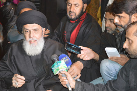RAWALPINDI, October 13: The Patron-in-Chief of Supreme Shia Ulema Board and chief of the Tehreek Nafaz Fiqh-e-Jafariya Quaid-i-Millat Jafariya Agha Syed Hamid Ali Shah Moosavi has said that the Gham-e-Hussain is the joint inheritance of all Muslims and all schools of thought will observe the Gham-e-Hussain jointly during the month of Muharramul Haram. Azadari-e-Hussain is our jugular vein in which no interference will be allowed. Banned terrorist organisations were openly working with new names. Implementation of 20 points of National Action Plan may be ensured for restoring of peace during Muharramul Haram. Restoring peace is not only the responsibility of the Army only, therefore federal and provincial governments should also support the Army. The schedule of local body polls may be changed on the occastion of Muharram, Safar, Ayyam-e-Aza and Chehlum of Imam Hussain (A.S.). In Kashmir issue, besides Indian stubbornness, the negligence of Pakistani rulers are also involved the example of which is Ufa Declaration therefore there is need to correct the direction of the foreign policy. If there is no restriction on politicians, Huffaz, and Naat Khawans then why there is restriction of Zakireen on going to other cities? We will not accept any unconstitutional restriction. Only negative activities should be stopped. The foreign funding is the root cause of riot. The foreign aid of religious and political parties should be banned, their assets should be checked and in this connection, he added, Tehreek Nafaz Fiqh-e-Jafariya offer itself for accountability, first. These views were expressed by while announcing Code of Azadari for Muharramul Haram here at the headquarters of the Maktab-e-Tashayyo, Ali Masjid, Satellite Town. Agha Moosavi said that In the end, we have seen the eras of big dictators and tyrant rulers, we were put in imprisonment, we were placed alive in walls, minarets were made of our blood, our bodies were trampled but it should be kept in mind that the echoes of Ya Sarat Al-Hussain Labbaik and Labbaik Ya Hussain will continue to emerge from every drop of our blood and from every particle of the earth. He we will never accept any bargaining in the way of Hussainiyyat. Therefore, it should be kept in mind that no interference whatsoever will be borne in observing the Azadari of Imam Mazloom (A.S.). The TNFJ chief while announcing the 14-point Code of Azadari said: