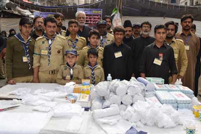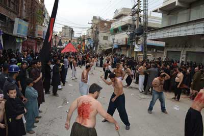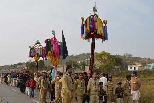 Later, after performing Zanjeer-Zani at different places, the participants of the main Ashoora procession reached Raja Bazar and Purana Qila where Zuljinah processions taken out from Imambargah Kashmirian Tyre Bazar and Darbar Shah Chan Chiragh also merged into the main procession. The main Chehlum procession terminated at Imambargah Qadeem after passing through Jamia Masjid Road and Imambara Chowk. Mukhtar Students Organisation District Rawalpindi had set up Azadari Camp at Fawwara Chowk while Ibrahim Scouts had set up Medical Camps at Habib Bank Chowk, Raja Bazar and Jamia Masjid Road to facilitate the Matmis. Office-bearers of Divisional and District Muharram Committees of the Tehreek Nafaz Fiqh-e-Jafariya and MFP jawans remained along with the procession throughout.