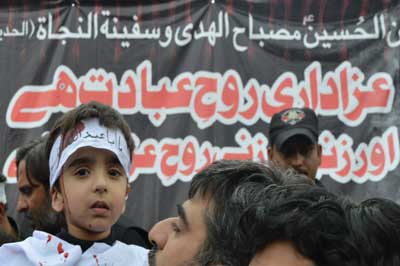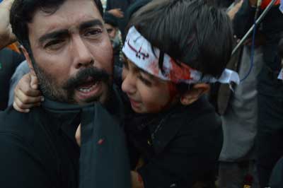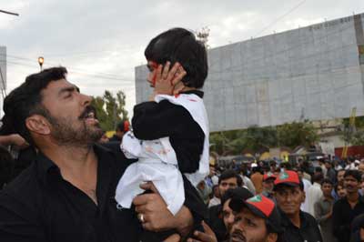 RAWALPINDI, October 24: The Youm-e-Ashoor in memory of Nawasa-e-Rasool Hazrat Imam Hussain (A.S.) and his 72 diehard companions was observed with traditional religious spirit, devotion and respect throughout the country including Azad Kashmir and Gilgit-Baltistan Tuesday. In Rawalpindi, main Youm-e-Ashoor procession was taken out from Imambargah Ashiq Hussain Teli Mohallah, Imambargah Col. Maqbool Hussain and Imambargah Hifazat Ali Shah Bohar Bazar. Mourners of Imam Hussain (A.S.) performed Zanjeer-Zani to express their devotion to the Imam Aali Muqaam (A.S.). Zuljinah, Alam Mubarik and other Taburrakaat were included in the Ashoora procession. The Quaid-i-Millat Jafariya, Pakistan, Agha Syed Hamid Ali Shah Moosavi participated in the procession, offered Ziarat of the taburrakaat and performed Matamdari. Talking to media and Azadars on this occasion, Agha Moosavi said that Muharramul Haram is the month of honour and dignity. He said the suicide attack in the Matmi procession in Jacobabad Shab-e-Ashoor and earlier bomb blast near the Imambargah of District Bolan in Balochistan is the conspiracy of our perpetual enemy that cannot shatter the enthusiasm of Azadaran. He said Imam Hussain (A.S.) had stated 1400 years ago that a person like him cannot give himself in Baiaat of a person like Yazid. Nawasa-e-Rasool Hussain Ibne Ali (A.S.) presented such a sacrifice in the hot plains of Karbala that provided protection to all revealed books and the Shariat forever. Today the whole humanity is proud of Hussain Ibne Ali (A.S.), he added. Agha Moosavi made it clear that the real founder of terrorism in Pakistan is Ziaul Haq who sponsored terrorists. We demand that calling any Muslim as non-Muslim should be declared as a cognizable offence and protest may be launched against those countries that are provided aid to terrorist groups in Pakistan while restriction should be imposed on foreign aid. He said the terrorists and their facilitators are roaming about freely and there is need to tighten noose against them. He said implementation on the National Action Plan be made in line with its spirit, Operation Zarb-e-Azb will definitely succeed and the Pakistans Armed Forces should not feel them alone. He said RAW is involved in incidents of terrorism in Pakistan, there are 19 Indian consulates in Afghanistan that have become the hub of terrorists, threatening phone to the Governor House Karachi from Delhi provides food for thought. He advised the politicians to become brave and do not bow down before the oppressor. He said the whole world peace has been spoiled by those who worship calf and cow. He lamented that some internal elements are busy in thwarting Zarb-e-Azb. He said the Modi government is a threat for world peace while the present rulers are also following in the footsteps of Modi by imposing restrictions on Azadaran. He vowed that no one can divert us from the path of Hussainiyyat.