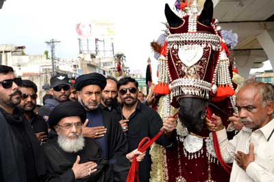 Earlier, Allama Syed QamarHaider Zaidi, Allama Shaikh Ijaz Hussain Madras, MaulanaIjlalHaider Al-Haideri, Zakir Malik Mudassir Abbas, Syed Assad HasnainMashadi, Zakir Hassan Raza Kiani, Syed GhalibMuttaqiAbidi, Ali Haider and other Zakireen addressed the Majlis-e-Aza. Police contingent and jawans of Mukhtar Force and Ibrahim Scouts performed the security duties during the Majlis and Taboot procession.