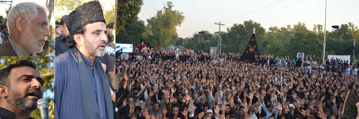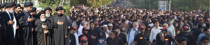 The TNFJ chief said that Fourth Schedule and Loudspeaker Acts are being misused while the banned organisations were working independently. He said we will not allow anyone to put restrictions on the processions of the Eid-e-Milad and Azadari-e-Hussain. He said Afghanistan is becoming another India for Pakistan while the enemies are averse to the China-Pakistan Economic Corridor. He said there is lack of leadership in Pakistan and whosoever came after the Quaid-i-Azam Muhammad Ali Jinnah kept himself busy in looting the country. He boasted that the Tehreek Nafaz Fiqh-e-Jafariya was instrumental in stopping Pakistan from becoming a sectarian State and got the restrictions on Milad-un-Nabi and Azadari processions lifted. Answering a question he said only Ayub Khan received a festive welcome in America. He said in the Zias martial era, jihadi elements were sponsored after the Russian defeat in Afghanistan and have now turned into terrorists. He said Pakistan so far have lost 70 thousand lives and bore losses of more than 90 billion in war against terror. He lamented that there is no mention about restriction on loudspeaker in the 20 points of the National Action Plan. The Punjab government advertisements also indicate that action will be taken against hate speeches, while a Majlis was stopped in Tank after arresting an Azadar from his home. He said the Control Rooms are used to be established in the Interior Ministry for the last quarter century and remain intact till 8thRabiulAwwal but unfortunately they set up Muharram Cells only for Muharram 8, 9 and 10 which is not acceptable to us. He said the tyranny is being witnessed in shape of democracy in Pakistan. He demanded that all Pakistanis may be given their constitutional and lawful rights. He said political bargaining is ripe in the country and only one particular Maktab is being rewarded by heading the Islamic Council of Ideology which is sheer injustice. Meanwhile, the procession, passing through its designate route, reached MuhammadiChowk and turned out into a large gathering addressed by Allama Syed QamarHaider Zaidi who said the mourning of Mazloom-e-Karbala is life and the source of survival. The Azadaran-e-Hussain on this occasion reiterated their resolve not to hesitate from any sacrifice for the supremacy of Islam, defence of the motherland, and for the promotion of Sunni-Shia brotherhood and coordination. They vowed to follow the Code of Azadari issued by the Quaid-i-MillatJafariya Agha Syed Hamid Ali Shah Moosavi till 8thRabiulAwwal. Later the Azadaran paid pursa to the Mazloom-e-Karbala (A.S.) by carrying out through Zanjeer-Zani. The procession after marching through its designated route concluded at Jamia Imam Al-Sadiq Karachi Company. Mukhtar Students Organisations, MI, Ibrahim Scouts, Mukhtar Generation, and Mukhtar Force participated in the arrangements of the procession while UmmulBaneen WF performed the security duties for women. Arrangements for Sabeel-e-Hussaini were made during the procession. Members of the Islamabad Muharram Committee of the TehreekNafazFiqh-e-Jafariya accompanied the procession along with high police officer and police contingent all along the processions route. Allama Syed Zahid Abbas Kazmi led the concluding Duaand thanked the participants of the procession, Matmis, Azadaran and the District Administration for their cooperation.