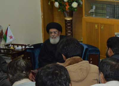 ISLAMABAD, November 25: The Patron-in-Chief of the Supreme Shia Ulema Board and Chief of the Tehreek Nafaz Fiqh-e-Jafariya Agha Syed Hamid Ali Shah Moosavisaid that there is need for waking up the honour of the international organisation the United Nations that is playing as the B team for the international colonial powers. It should summon its immediate session before the whole world is dipped in the pool of blood and utilise all its energy on the one-point agent i.e. promoting peace and tranquillity and rooting out terrorism. Punishment should be suggested for any country that supports and facilitates terrorism in any manner because at present Russia, Iran and few other nations are on one side while more than 65 countries are on the other side. These conditions are pointing towards a gory future. These views were expressed by him while talking to a delegation that called on him Wednesday at the head of Tehreek Nafaz Fiqh-e-Jafariya Provincial Council Punjab President Allama Syed Abu Jafar Naqvi. Agha Moosavi said that some Muslim States should be made permanent representatives to make the Security Council a balanced organisation for representation of more than 2 billion Muslims, legislation may be made to respect all religions, the whole world, particularly the international colonial powers should adopt the Chinese policy that is following the principles of peace, justice and mutual respect. He said rooting out terrorism going on in the name of religion, Maktab and language is the foremost need of the hour. He called upon all powers to fulfill the norms of justice and fair-play for which the seerat of the Khanwada-e-Ahle Bait (A.S.) is the best example to follow who by offering sacrifices of their lives and bearing the brunt of gaol apprised the world that they can be murdered, put in jail, can force them to take round of one city and the other but they cannot ever divert them from the righteous path, justice and fair-play. The TNFJ chief said that by using the Muslim States, Turkey has downed a Russian plane that has made their relations sour while NATO has also began its session because it is an established fact that attack on any of their member will be considered an attack on them all. He said the Paris attacks are being considered as second 9/11 and in other words another game is about to begin that would be harmful for the whole humanity because the ideology of these all States is to remove Bashar Al-Assad come what may. Agha Moosavi said that Pakistan is confronted with one incident or the other from the beginning because the Quaid-i-Azam left the nation in high and dry very soon, Liaquat Ali Khan was got killed, minor democracies were overcome by martial law after martial law, 1965 war was imposed, Pakistan was divided into two in 1971, Bhutto was hanged, Ziaul Haq was targeted for supporting jihadis, Benazir Bhutto was got killed, and even the Governor, chief ministers, advisers, generals, ulema, zakireen, doctors, engineers, judges and general citizens were not spared but at that time no one talked about the Third World War. He said the Pakistans Armed Forces have committed to wipe out terrorists from the country by launching Operation Zarb-e-Azb in the light of the National Action Plan formed as a result of Shahadat of more than 150 students in the Army Public School Peshawar incident. The Quaid-i-Millat Jafariya Agha Syed Hamid Ali Shah Moosavi expressed concern that fleeing terrorists were taking refuge in Afghanistan and are involved in incidents of targeting killing in Karachi and Balochistan the day in and day out but our brave army is confronting them courageously. About 75 thousand people lost their lives in these heinous acts of terrorism, besides bearing the loss in trillions but the chief of the international terrorists did not consider attack on any oppressed as an attack on the whole humanity nor the Pope talked about the World War, he added.