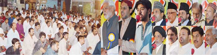 RAWALPINDI, October 5: Dual system of education is creating disturbance in the society. Foundation of our beloved motherland is being weakened by making education a business. Our curriculum must be developed to reflect compliance with the holy Quran, Sunnah of the holy Prophet (PBUH&HHP) and national requirements. Education must be free till Post graduate level while the looting of Private schools, collages, and Universities must be stopped. In order to protect from the clutches of terrorists, steps must be taken to educate each and every child of Pakistan. Universities exams must not be scheduled during the Ayyam e Aza e Hussaini in Muharram ul Haram. National Action plan and Operation Zarb e Azab is aimed at guaranteeing a safe future for the nation. The pious character of the door of the city of knowledge Hazrat Ali ibn e Abi Talib (A.S) is the role model for the knowledge seekers across the world. This declaration was announced at the conclusion of the central congregation of Jashan e Ghadeer o Mubahila at Imambargah Qadeem Hussaini Mahaz held under the auspices of Mukhtar Students Organization in connection with the Alamgeer Hafta e Walayat celebrated on the call of Quaid e Millat e Jafariya Agha Syed Hamid Ali Shah Moosavi. The ceremony was presided by the central President of Mukhtar Students Organization Syed Muhammad Abbas Kazmi while the Additional Secretary General of Tehreek e Nafaz e FiqahJafariya-Col. Retd. Syed Sakhawat Hussain Kazmi, Haji Muhammad Saqlain, SardarTaaj Muhammad, Allama Zahid Abbas Kazmi, Chairman Mukhtar S.O Syed Bu Ali Mehdi, Deputy Chairman Syed Qasim al Hussaini were the chief guests on the occasion. While addressing to the congregation, Syed Muhammad Abbas Kazmi said that students played the major role in the movement of Pakistan run by Quaid e Azam Muhammad Ali Jinnah, the pious characters of the Mashaheer e Islam must be included in the educational curriculum to the maximum extant because the nations which learn from the lives of their heroes remain alive while disassociation from the foundation and teachings Islam is the reason of the problems faced by the nation. This disassociation form Islam has allowed westernization to enter into our homes and posing threat to our next generations. A curriculum based upon Islamic teachings is the only way to develop a nation that will serve and protect Islam and Pakistan. In his address to the gathering, Col (Retd) SakhawatKazmi said that the international colonial powers have created chaos across the world using the science and technology therefore Muslims must mend their broken association with knowledge by getting associated with the holy Prophet (PBUH&HHP) and Hazrat Ali Ibn e AbiTalib (A.S) to regain their past glory. He said that Ghadeer reminds us of the Walayat of the same Ali (A.S) who stated that Knowledge is the lost belonging of a believer, wherever you find it, take it. The participants of the gathering pledged to ensure complete compliance with the code of Azadari e Muharram that will be announced by the Quaid e Millat e Jafariya Agha Syed Hamid Ali Shah Moosavi. The resolution expressed complete solidarity with the Pakistans Armed forces. Besides other student leaders, the congregation was also addressed by Khateeb e Fateh e FaratAllama Qamar Haider Zaidi, AllamaIjaz Hussain Mudarris, AllamaMatloob Hussain Taqi, Zakir Sheikh Aqeel Raza, ZakirZawarSajid Hussain, ZakirIbrar Hussain, Zakir Zafar Iqbal Zafar, Zakir Hassan Raza Kiyani, Zakir Hamza Ali Waris, Zakir Adnan Padhraar, MaulanaKhursheedHaiderJawadi, and the Naatkhwans of Hassan bin SabitNaat Academy also presented tributes in the court of Ameer ulMomineenHazrat Ali ibn e AbiTalib (A.S). Stage was administered by QaziWafa Abbas while security arrangements were dealt by the volunteers of Mukhtar Force. Mukhtar S.O and Mukhtar Generation ran a reception camp on the occasion.