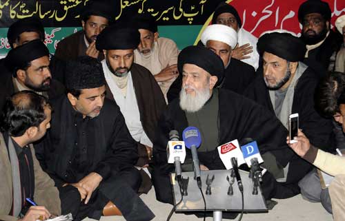 RAWALPINDI, December 27: The Patron-in-Chief of Supreme Shia Ulema Board and chief of Tehreek Nafaz Fiqh-e-Jafariya Agha Syed Hamid Ali Shah Moosavihassaid that all those parties that are doing politics on the Quetta Inquiry Commission have friendship with banned groups. No one should react and Supreme Court should review it. The National Action Plan and Operation Zarb-e-Azb began in the era of Gen. Raheel Sharif, and the new Army Chief should go two steps forward towards that direction and begin operation in Punjab and Islamabad also. Negative propaganda is being done by posting fake pictures about ongoing war in Syria. All countries are fighting the war of their interests. Anti-Israel resolution by the outgoing Obama will make no difference. Hazrat Abu Talib (A.S.) was the protector of Rasool-e-Akram (SAAW) and his Nikah Khawan whose shelter was declared by Allah as His shelter in Quran. The method of offering sacrifice for ideology comes from Asswa-e-Abu Talib (A.S.). Pakistan was divided owing to four wars inflicted on Pakistan and the four martial laws and led to the sense of deprivation and it gave the gifts of Kalashnikov culture, terrorism and the rulers and politicians will have to display sincerity of purpose to root these out. These views were expressed by him while talking to MatmiAzadaran and media representatives while leading the central procession of twin cities of Rawalpindi-Islamabad taken out fromImambarahZainulAbideen (A.S.) to mark the conclusion of the Universal Ayyam Al-Huzn to mark the Wisal of Nigehban-e-Risalat Hazrat Abu Talib (A.S.). He said after the World War-I, the British colonial powers under a conspiracy broke the Sultanate of Usmania into pieces and inducted their agents in Islamic States and on the soil of Hijaz the holy shrines of Rasool-e-Khudas (SAAW) forefathers, Aal-e-Athaar, UmmahatulMomineen and SahabaKubaarwere razed to ground so much so that the holy shrine of Rasools (SAAW) mother Hazrat Amna (S.A.) was not spared as a result of which the hearts of devotees of the Rasools are heavy.