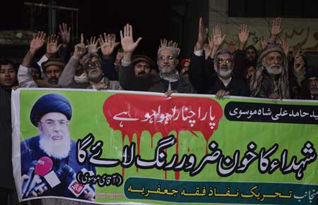 ISLAMABAD, January 22: Protest rallies and gatherings were held all across the country in connection with the mourning of Parachinar incident on the call of Tehreek e Nifaz e FiqahJafariya in which the terrorist attack of Parachanar was strongly protested against while implementation of the National Action Plan was demanded to curb the menace of terrorism from Pakistan. The Patron in-Chief of Supreme Shia Ulama Board and Head of Tehreek e Nifaz e FiqahJafariya Agha Syed Hamid Ali Shah Moosaviwhile addressing to the a delegation from Kohat and Kurram agency has said that if democracy was not humiliated by the hereditary kingdom in political parties, then it will not be effected by the military courts either. Tenure of the military courts must be extended, government must provide protection to the residents of Parachinar from the terrorists infiltrating from Afghanistan. The matter of Indian, American and Israeli provided terrorists sanctuaries in Afghanistan must be raised at the international forums while formal protest must be lodged with the Afghan government. Destruction of thirty years old terrorist making factories by the Pakistan army has not been liked by the American colonialism and her agents as they have been trying to defuse the gains of Zarb e Azab operation and Parachanar incident is also a part of the same conspiracy. By advocating for banned organizations, rulers are polluting themselves. Rulers lack patience and therefore, those who speak truth are victimized. Instead of putting efforts against those who point out mistakes, government must clutch proscribed organizations. Millions are paid to the victims of a plane crash but pennies are paid to those who get killed in the terrorist attacks. Such kinds of dual policies must be abandoned and the state must act like mother which treats everyone equally, rulers cannot fulfill responsibilities through mere announcements.
