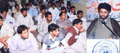 Delegates from across the country including Azad Kashmir and Northern Areas put up their performance reports in the Convention. The participants were briefed about the activities of different departments. A communiqué, issued at the close of Convention, said that Shia School of Thought which is neither in the rear nor would be so, has equal contribution in formation and construction of Pakistan rather Farzandaan-e-Jafar Ibn-e-Muhammad (AS) always stand as vanguard on every occasion. The communiqué made clear that in such a time when beloved Pakistan is moving towards democracy, newly elected government should keep in mind that education of a one particular school of thought could not be imposed on the other. Acquiring education is a part of fundamental rights and included in 73 constitution of Pakistan. Equal ideological representation from primary to college, university level education is our natural and fundamental right which achievement is our sole objective, the declaration added. It said: Islam is a collection of different recognized sects, therefore, changes in Pakistans educational system in accordance with basic ideology are inevitable. And not doing so will be open deviation to the objective of Pakistan establishment. The communiqué announced formation of a committee in this regard, which will submit complete report after profound study of school/college syllabus, and future strategy will be laid down in its light. MSO convention said that only that person could teach about a subject, sect or ideology who has a relation with that very subject, sect and ideology. How could it be possible that a non-Muslim give education of Islam? Exactly as only that could educate Geography who knows it, therefore, Shia, Sunni are two recognized schools of thought and only those are enabled to educate these thoughts who themselves belong to it. The same is ideological representation for which achievement our struggle will remain continue, it said. The convention urged the government that Father of Nation Hazrat Quaid-e-Azam Muhammad Ali Jinnah and Allama Muhammad Iqbal are our national heroes. Birth and death anniversaries of national and religious heroes should be observed with respect, honour, devotion and national zeal. Government was demanded to setup a committee aimed at drawing up recommendations according to the principles of justice for fulfillment of rights of all because Pakistan is only state of the world which came into being in the name of Islam that holds foundation in justice. The communiqué demanded ideological representation for Shia School of Thought in all departments under 21 May, 85 Junejo-Moosavi agreement for the solution of shia problems. The participants expressed great concern in the communiqué over ignorance of Shia School of Thought on electronic and print media, which fresh example is to ignore the death anniversary of benefactor of Islam, Malikatul Arab Hazrat Khadijatul Kubra (SA) despite this that Prophet of Islam (SAW) termed the year of her (SA) death as Aam-ul-Huzn (the year of grief), as evident by history, and keeping this foundation Quaid-e-Millat-e-Jafariya Pakistan Agha Moosavi announced this day observation as Youm-ul-Huzn. Likewise Youm-e-Aman to mark the birth anniversary of Hazrat Imam Hassan (AS) was also ignored. The communiqué strongly condemning unjust behaviour and negative policy of daily Jang with Pakistani Shias only representative body, Tehreek Nafaz-e-Fiqh-e-Jafariya Pakistan, demanded from TNFJ leadership to give policy to the nation regarding the newspaper, and MSO would say Labbaik with full power on it. The convention appealed to countrymen to keep continue struggle for countrys integrity and development. It said that students are under obligation to spend all their energies for protection of ideology, motherland and welfare of people besides giving full attention in getting education because knowledge is our weapon. Expressing solidarity with oppressed people of Kashmir and Palestine, prayers were offered for success of their freedom movements. OIC was urged to lay solid and joint lineup for ending problems faced by Muslim Ummah. MSO Vice Chairman Syed Raza, Mukhtar Generation (MG) Supreme Organizer M. H. Jafri, Guardian Council scientific advisor Allama Hussein Moqaddesi, Col. (RTD) Syed Muhammad Ali Shah, Syed Jabir Naqvi, Syed Imran Naqvi, Asad Ali Hasani, Ajmal Naqvi, Syed Joan Mashhadi, Mumtaz Naqvi, Asif Hussain Kazmi, Raja Faisal Abbas, Aqeel Naqvi, Liaqat Ali Kiyani and other delegates addressed the convention. END
