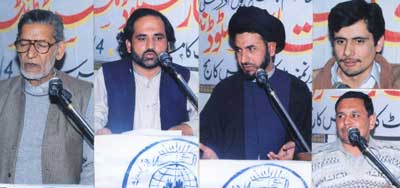 Addressing the Seminar, Allama Muqaddesi said Hazrat Imam Hassan (AS) was brought up of Khulq-e-Azeem. That is why helping out and supporting the oppressed, have-nots and orphans had been his practice. He said to make habit Sulah-e-Hassan (AS) is of paramount importance to forge the world a hub of peace. TNFJ central leader Syed Qamar Haider Zaidi read Special message of Quaid-e-Millat-e-Jafariya Pakistan Agha Syed Hamid Ali Shah Moosavi on this occasion. Another resolution adopted on the occasion condemned forcefully ignorance of peace Day by government-run electronic media. Denouncing daily Jang Rawalpindi for completely ignoring the program of Peace Day marking the birth anniversary of Hazrat Imam Hassan (AS), the resolution protested over Jang newspapers negative and ceaseless undue behaviour with Tehreek Nafaz-e-Fiqh-e-Jafariya Pakistan the only mainstream representative body of Shiite School of Thought in Pakistan. The participants appealed to the TNFJ leadership to give the nation a strategy regarding daily Jang. Another resolution, demanding implementation of Moosavi Peace Formula for durable peace in the country, resolved to say yes on every policy of Quaid-e-Millat-e-Jafariya Pakistan Agha Syed Hamid Ali Shah Moosavi for gaining religious rights of Millat-e-Jafariya and protection and promotion of wila and aza. END