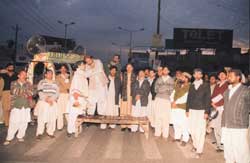 RAWALPINDI, December 20: The Youm-e-Shahadat of Hazrat Imam Jafar-e-Sadiq (A.S.) was observed throughout the country including Azad Kashmir and Northern Areas on Friday, as Youm-e-Aza on the call of Quaid-i-Millat Jafariya, Pakistan, Agha Syed Hamid Ali Shah Moosavi. Majalis-e-Aza were held in mosques and Imambargahs and Taboot processions taken out on this occasion.