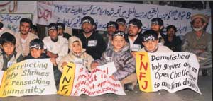 Meanwhile, according to reports reaching TNFJ headquarters a protest rally organised by TNFJs Jannatul Baqee Committee was staged in front of the Karachi Press Club, which was addressed by TNFJ Karachi Urban President Anwar Hussain Jafri, Maulana Muhammad Aun Naqvi, Arsalan Abidi and others. In Larkana, a rally taken out from Ali Masjid, Aqil Road terminated after reaching Pakistan Chowk. Various Matmi organisations from interior Sindh participated in a large number. The rally was led by Lutfullah Shah Lakyari, Syed Noor Hussain Shah, Allama Ghulam Shabbir Wadho and others. Martamdari was also held at Pakistan Chowk.