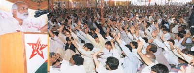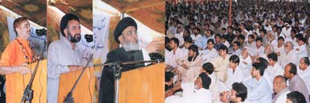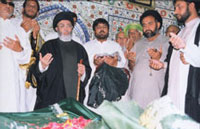 ISLAMABAD, May 30: Agha Syed Hamid Ali Shah Moosavi, chief of the Tehreek Nafaz-e-Fiqh-e-Jafariya, Pakistan, has called upon the rulers to sever their relations with colonial powers and stick to Daman-e-Haider-e-Karrar (A.S.), and while fulfilling the norms of justice and fair-play, give rights to all schools of thought that had participated in creation of the country because Allah also helps when the country is given support of the pillars of justice. He stated this while addressing a huge Majlis-e-Aza held in connection with the Annual Pursadari on the second day of Ayyam-ul-Huzn being observed to mark the sad demise of Hazrat Abu Talib (A.S.), at Darbar Hazrat Bari Imam Kazmi Qalandari (R.A.) in Nurpur Shahan Islamabad on Friday. Thousands of Zaireen, Matmi Azadaran, Sajjada Nashins of various religious elders, Sadaat and Fuqara gathered there from all over the country, participated in the Majlis. Agha Moosavi said the main reason of the existing problems is lack of justice, we have been deprived of our basic rights for the last 55 years, but the powers that be should know that we are not afraid of being detained, we could bear every brunt but would never bargain or allow anyone to bargain on our rights, honour and dignity of the nation and the country. He said LFO etc. are not the issues of public, we have sympathies with politicians but we have no concern with the wardi (uniform). He said justice is life while terrorism is monstrous. Terming the Presidential Anti-Terrorism Ordinance a joint voice of the nation to root out terrorism, he called for its effective implementation.