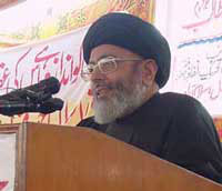 RAWALPINDI, June 6: Agha Syed Hamid Ali Shah Moosavi, chief of the Tehreek Nafaz Fiqh-e-Jafariya, Pakistan has said that Rahbar Islamic Revolution Ayatollah Al-Uzma Syed Roohullah Moosavi Al-Khomeini taught the oppressed world ways and means to confront the evil forces with unison. He stated this while addressing Majlis-e-Tarheem on the occasion of death anniversary of Ayatollah Khomeini here on Friday. He said in all worldly religions and nations the world over, justice and fair-play enjoy Asaasi and basic status in Islam while those who violate these principles and commit oppression and brutality are confronted with defeat along with those elements who support dictators and tyrant rulers. Agha Moosavi said the biggest crisis faced by the world today is lack of justice and fair-play, the United Nations objective is not to allow anyone to interfere in others affairs but chief of the colonial powers has been in habit of interfering in the work of the poor, under-developed countries, oppressed and have-nots without any cogent reasons, staging coup there and imposing rulers of her own choice so as to use them for her personal interests. He said the brave and courageous person like Ayatollah Khomeini in this region not only thwarted their conspiracy but also gave a new lease of life to independence movements of the oppressed world. The TNFJ chief said the way international colonial powers destructed Afghanistan and Iraq in the garb of terrorism provides food for thought not only to the United Nations but also to the intelligentsia. He said now the cat has come out of the bag because America was trying her utmost to strengthen Israel in Middle East and India in South Asia so as to maintain her supremacy and the Road Map being given for fulfilling her desires is a part of New World Order. He said it is a testing time for the United Nations to resolve long-standing issues of Kashmir and Palestine in the light of the United Nations Resolutions keeping to the desire of their respective people. Any effort to impose some other solution on Kashmiris and Palestinians would be a great oppression. He said in these circumstances, Muslim rulers are under the obligation to display courage and adopt the path of Khomeini for the supremacy of Islamic World because the live nations never bargain their interests. The Quaid-i-Millat-i-Jafariya Agha Syed Hamid Ali Shah Moosavi demanded from the OIC to adopt a joint strategy in the present precarious situation otherwise there would remain no justification to keep this organization intact. He expressed concern that now Iran was on American target and the Islamic World should take immediate notice of this situation. He made it clear that international terrorist America is not a friend of anyone but is a huge reptile that would devour all. He said only Iraqi people enjoy the right to form government in Iraq, therefore, this right should only be given to the Iraqi people. END