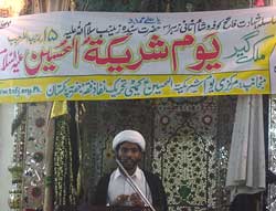 TNFJ Rawalpindi divisional Sharikatul Hussain (AS) At Qasre Abutalib (AS), Majlis-e-Sharikatul Hussain (AS) was addressed by Moulana Tanvir Hussain Kazmi and Zakir Syed Matloob Hussain Kazmi In Peshawar, Majlis-e-Sharikatul Hussain (AS) Syeda Zainab binte Ali (AS) In Lahore, a majlis-e-shahadat Ummul Masaib Hazrat zainab (SA) was held In Karachi, majalis-e-Sharikatul Hussain (SA) were held at RAWALPINDI, September 12: Agha Syed Hamid Ali Shah Moosavi, chief of the He stated this in a special message issued on the occasion of Martyrdom Agha Moosavi said that Hazrat Zainab (S.A.) is that great freedom fighter Like Hazrat Khadija-tul-Kubra (S.A.) helped the Holy Prophet (SAW) in He said that Hazrat Zainab (S.A.) provided protection to mission of The Quaid-i-Millat-i-Jafariya Agha Syed Hamid Ali Shah Moosavi said that He said the way colonial powers and her Indian and Zionist agents have RAWALPINDI, September 11: Agha Syed Hamid Ali Shah Moosavi, chief of the He stated this while addressing the Mehfil-e-Murtazavi on the auspicious He said the international terrorist has started aggression against Muslim Agha Moosavi said atheist forces are not only united but were also He said religion of Islam is based on five things the most important of He said Ali ibne Abi Talib (A.S.) has the honour of being the The Quaid-i-Millat-i-Jafariya Agha Syed Hamid Ali Shah Moosavi said that He said under a joint strategy of the oppressed and Muslim States,